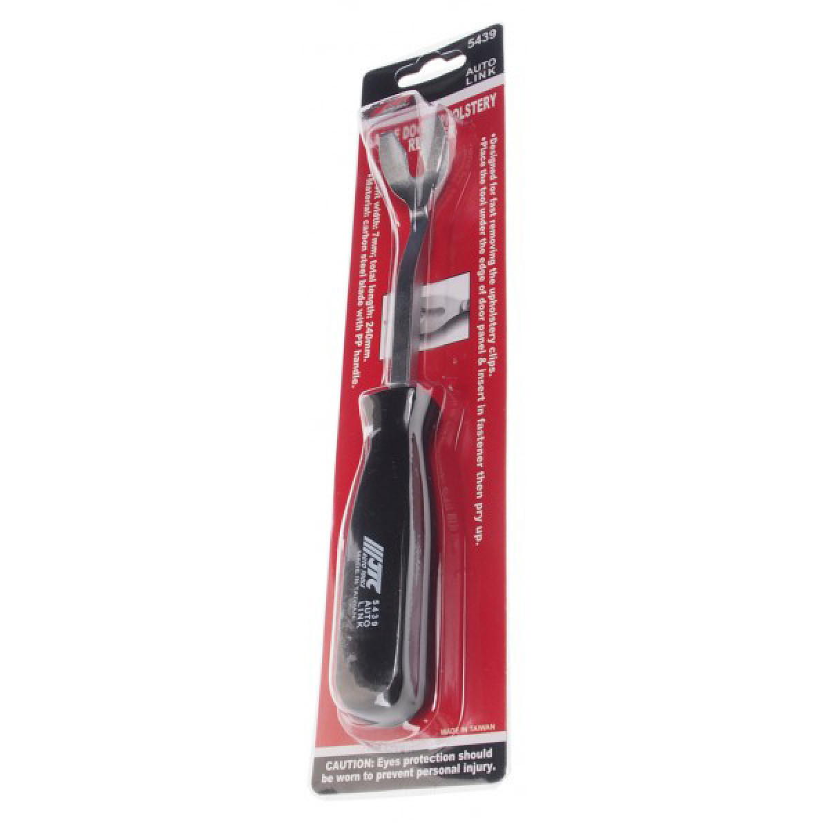 Съёмник для клипс JTC 5439 предназначен для аккуратного и безопасного расклинивания и снятия крепёжных клипс внутренней дверной обшивки диаметром до 7 мм без повреждения элементов салона. Для работы необходимо завести инструмент под край дверной панели, вставить в крепление и осторожно поддеть клипсу.
