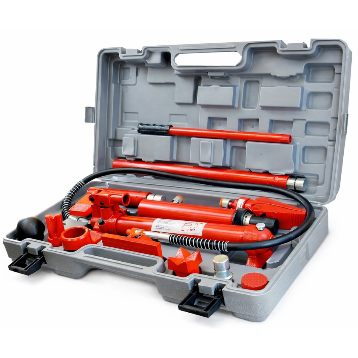 Профессиональный набор предназначен для выполнения рихтовочных и кузовных работ, в частности для восстановления геометрии больших участков автомобиля: дверных, оконных, капотных и багажных проемов. Благодаря мощному 10-тонному гидроцилиндру, ручному приводу и широкому выбору насадок, набор позволяет производить точные вытяжные, разжимные и формовочные операции.