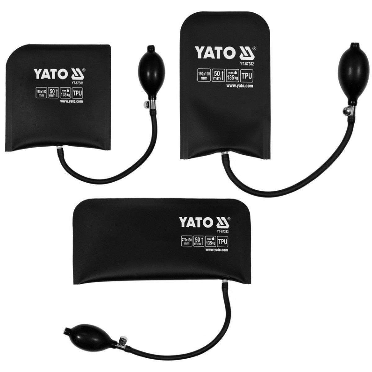 Набор пневматических подушек для аварийного открытия дверей автомобиля YATO-YT-67385 предназначен для подъема, перемещения, сдвига и точного выравнивания тяжелых элементов при выполнении монтажных и технических работ. Набор эффективно применяется для работы с мебелью, оконными и дверными рамами, а также для установки стиральных машин, холодильников и другой бытовой техники. Каждая подушка выдерживает нагрузку до 135 кг и обеспечивает максимальную высоту подъема до 50 мм, что позволяет плавно и контролируемо изменять положение объектов. Минимальная толщина около 2 мм в ненадутом состоянии обеспечивает удобное введение подушек в узкие зазоры. Подушки изготовлены из высококачественного ТПУ, что гарантирует прочность, износостойкость и защиту поверхностей от царапин при подъеме тяжелых предметов. Регулируемый приток и отток воздуха обеспечивает оптимальный контроль процесса подъема и выравнивания.