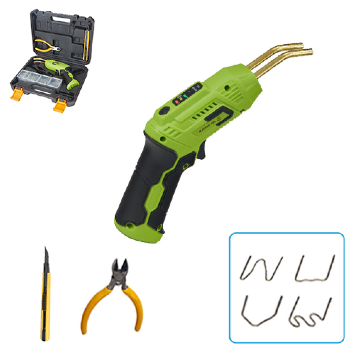 Набор Alloid PWG-4009 — современный беспроводной инструмент для быстрого и качественного восстановления пластиковых деталей . Отлично подходит для ремонта автомобильных бамперов, панелей, корпусов электроники, мотообтекателей и других пластиковых элементов.