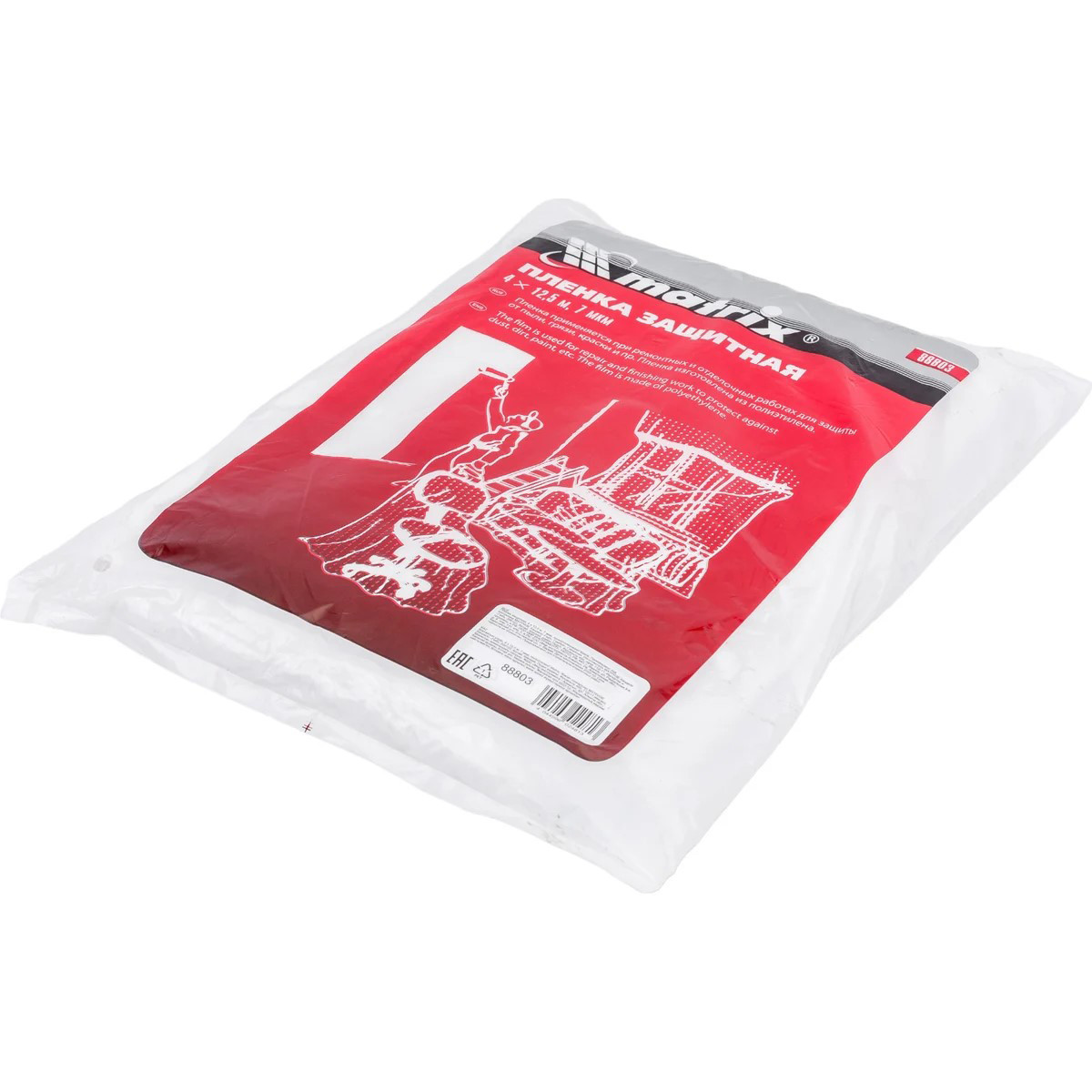 Защитная полиэтиленовая пленка MATRIX 888039 предназначена для защиты поверхностей и предметов от пыли, краски, грязи и механических загрязнений при строительных, отделочных, ремонтных и слесарных работах. Пленка позволяет эффективно укрывать мебель, пол, окна, оборудование и другие элементы, предотвращая повреждения и загрязнение. Изготовленная из прочного полиэтилена, пленка способна выдерживать повышенные нагрузки и давление, что обеспечивает устойчивость к разрыву и механическим повреждениям. Толщина 7 мкм оптимально сочетает легкость материала и достаточную прочность для универсального применения. Размер полотна 4 × 12,5 м позволяет накрывать большие площади без стыков или разрезать пленку на фрагменты нужного размера. Пленка также подходит для укрывания теплиц и парников в частном хозяйстве, что расширяет область ее применения. Прозрачный цвет обеспечивает визуальный контроль поверхности, а отсутствие вредных примесей делает материал безопасным в использовании.