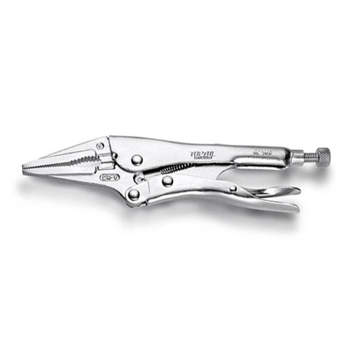 Клещи с фиксатором с длинными прямыми губками TOPTUL DAAS1A06 предназначены для надёжной фиксации плоских металлических деталей при выполнении сварочных, слесарных и монтажных работ. Обеспечивают стабильный и мощный захват, позволяют точно регулировать усилие зажима, гарантируют безопасное удержание заготовки без самопроизвольного раскрытия. Инструмент изготовлен из хром-ванадиевой стали CR-V, прошедшей профессиональную термообработку и механическую обработку, что обеспечивает высокую прочность и износостойкость. Длинные прямые губки обеспечивают удобный доступ к труднодоступным зонам и равномерный прижим по всей площади контакта. Фиксатор спускового механизма предотвращает случайное раскрытие под нагрузкой. Никелированное покрытие защищает инструмент от коррозии. Общая длина клещей составляет 150 мм (6").