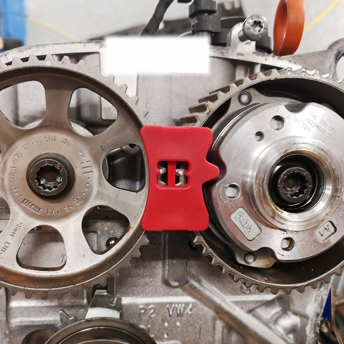 Фиксатор предназначен для блокировки распределительного вала при обслуживании двигателей объёмом автомобилей группы VAG. Обеспечивает точную фиксацию фаз ГРМ и облегчает замену ремня и другие работы по синхронизации.