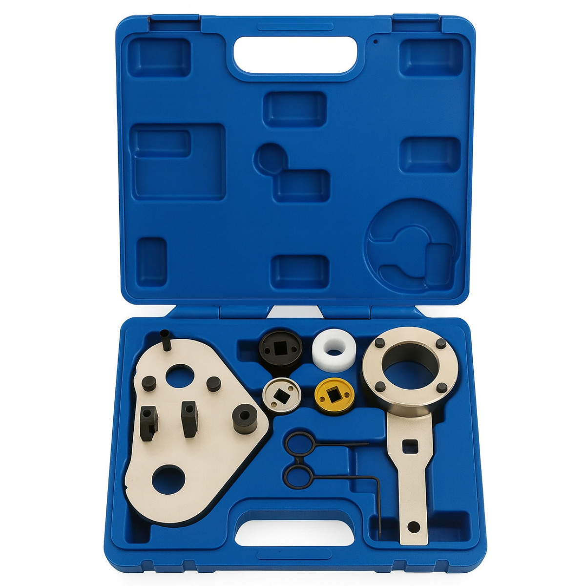 Профессиональный набор AM4108 предназначен для блокировки и точной регулировки фаз газораспределительного механизма бензиновых двигателей 1.8 TSI и 2.0 TFSI группы VAG. Обеспечивает корректную синхронизацию валов при обслуживании цепи ГРМ и гарантирует безопасный ремонт.