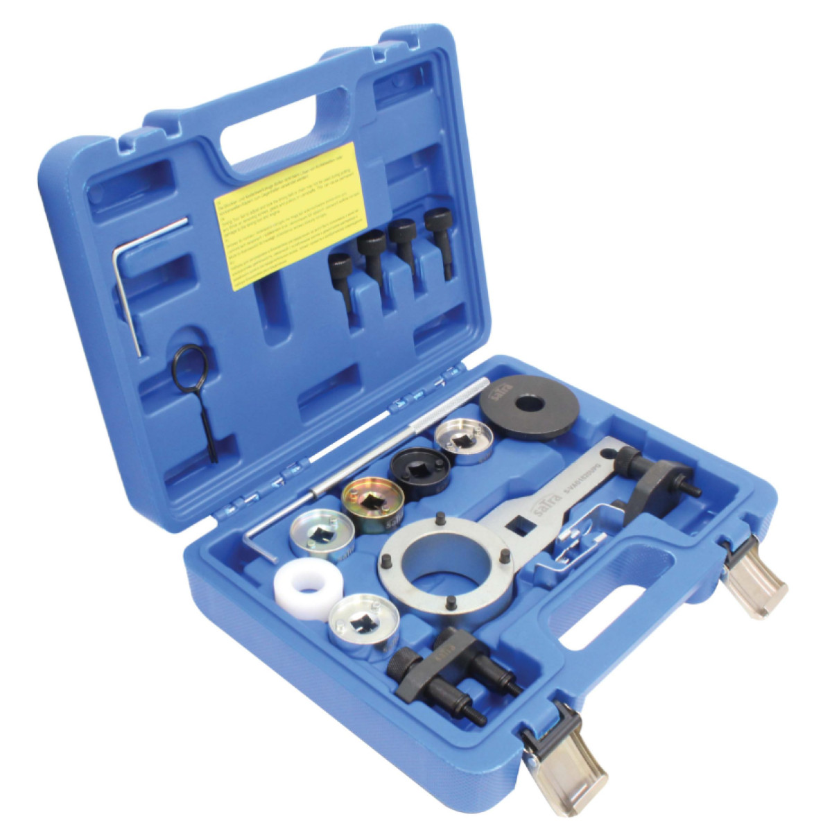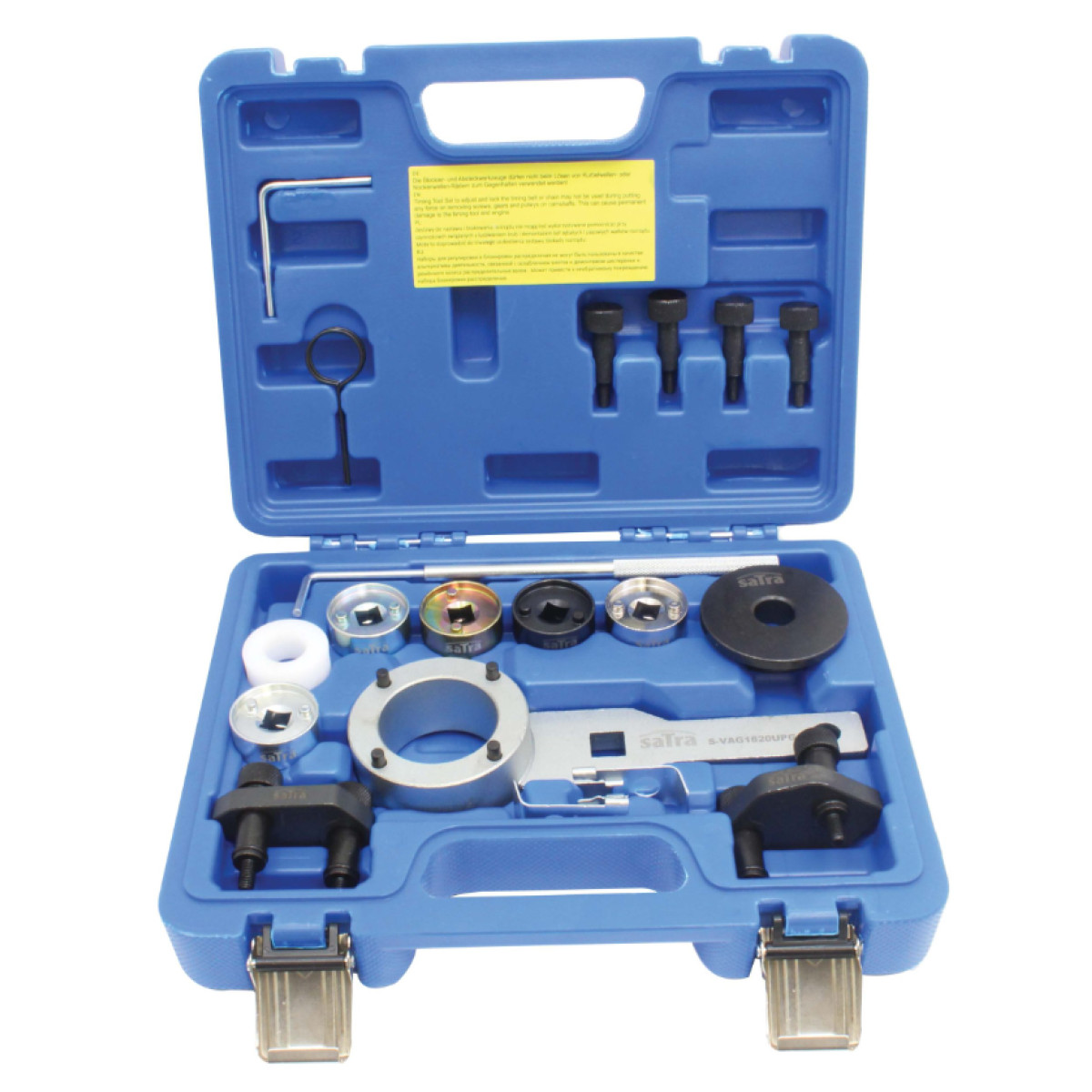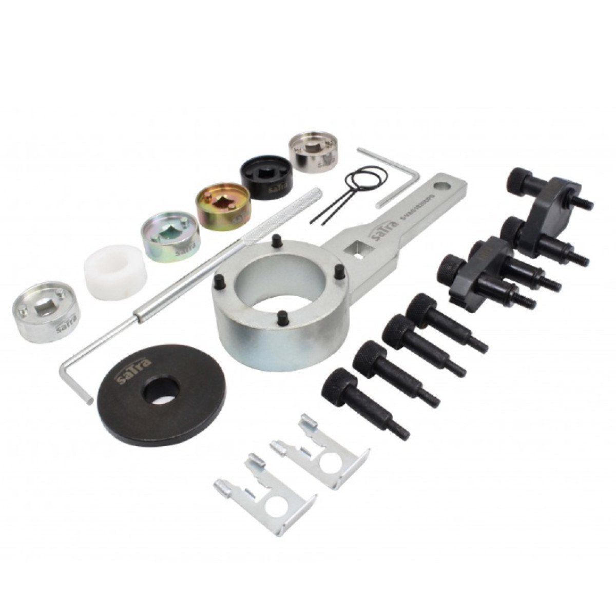 Набор фиксаторов SATRA S-90007 идеально подходит для ремонта и обслуживания двигателей VAG, позволяет надежно зафиксировать распределительный и коленчатый валы при работах с ГРМ на автомобилях Audi, VW, Skoda и Seat.