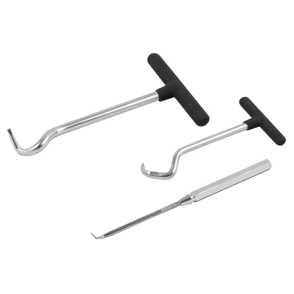 Набор инструментов предназначен для демонтажа уплотнительных колец, сальников, O-ring колец, шлангов и других элементов. Используется для аккуратного извлечения деталей в труднодоступных местах без повреждения посадочных поверхностей. Специальная форма и угол крюков обеспечивают эффективность и удобство в работе. Набор подходит для использования в автосервисе и при ремонте техники.
