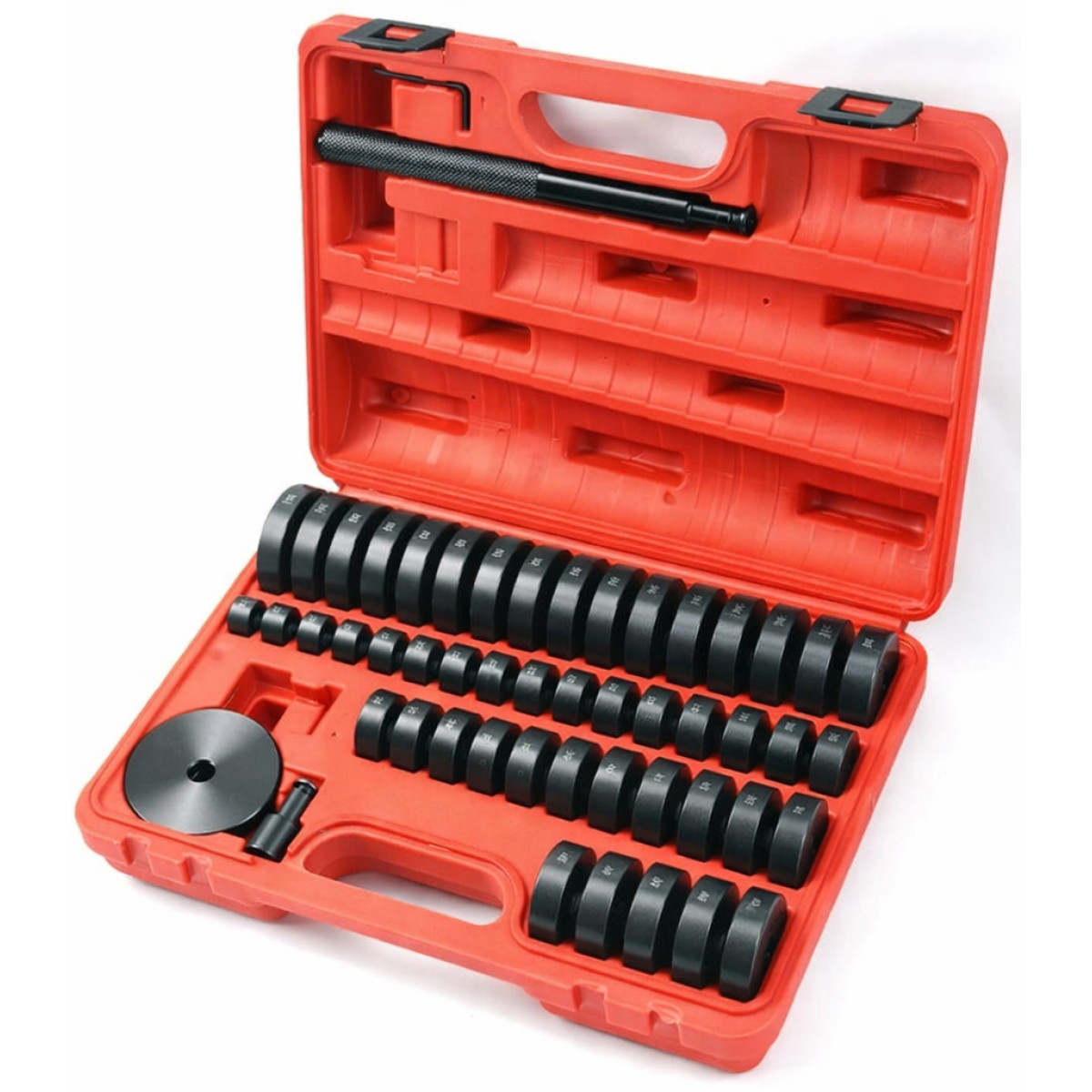 Набор инструментов для монтажа сальников, подшипников и втулок предназначен для установки и демонтажа подшипников, металлорезиновых втулок (сайлентблоков) и пальцев без повреждения посадочных мест. Используется как универсальная система адаптеров для работы с гидравлическими и ручными прессами. Обеспечивает точную и равномерную установку элементов заподлицо с корпусом. Подходит для профессионального использования на сто, в мастерских и гаражных условиях.