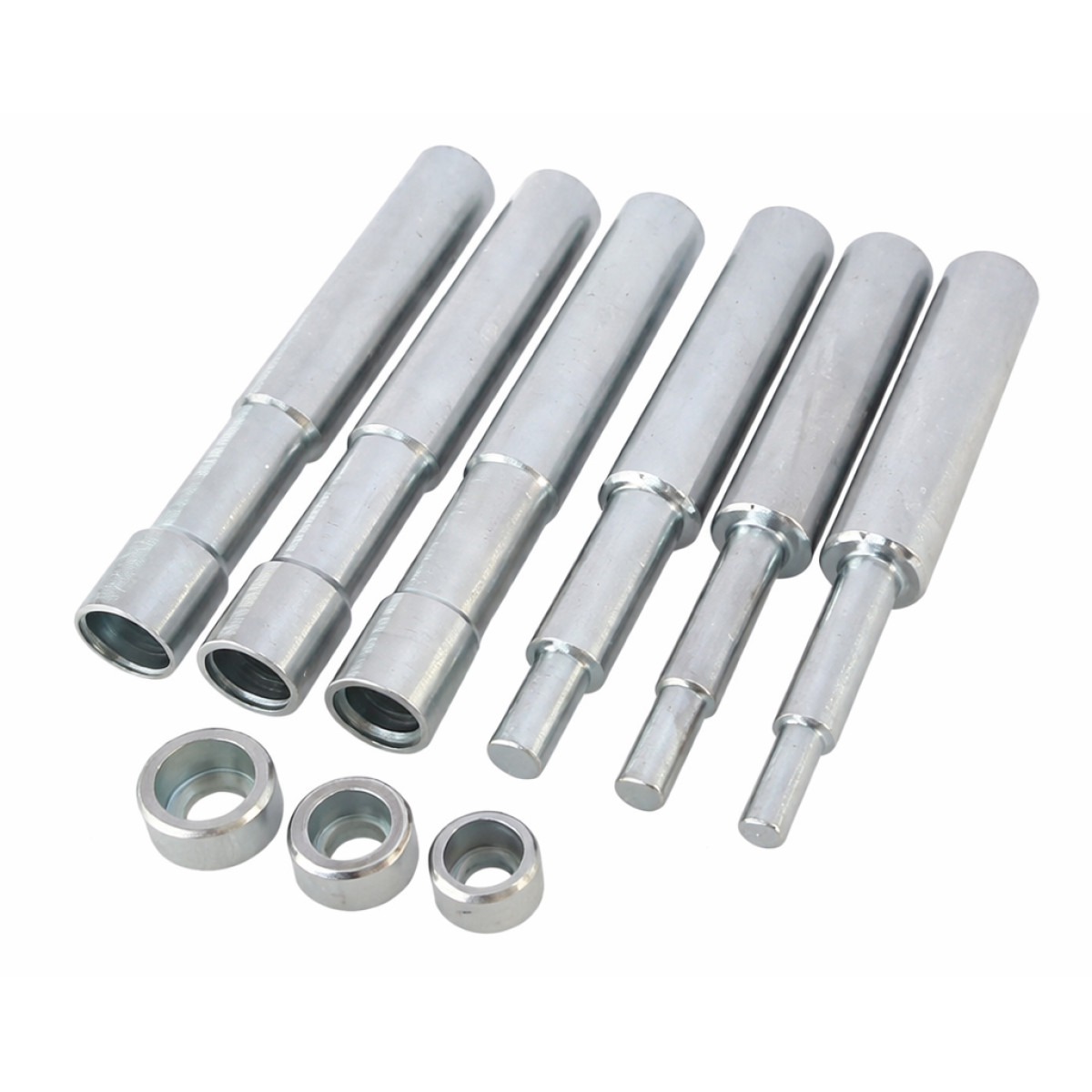 Набор для монтажа и демонтажа сальников клапанов и направляющих втулок предназначен для обслуживания газораспределительного механизма двигателей. Инструмент используется для запрессовки и выпрессовки направляющих втулок клапанов, а также для установки маслосъемных колпачков. Подходит для работы с втулками диаметром 7 мм, 8 мм и 9 мм, что делает его универсальным решением для ремонта двигателей различных марок, включая ВАЗ. Набор обеспечивает точность выполнения работ и удобство при использовании как в мастерских, так и в условиях СТО.