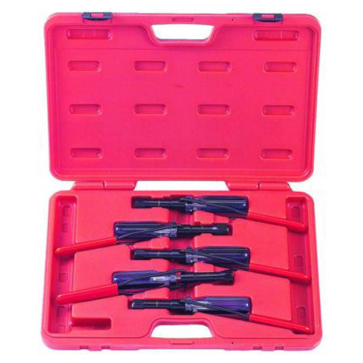 Набор инструмента для регулировки клапанов двигателя предназначен для точной и удобной настройки клапанного механизма на различных автомобилях. Инструмент подходит для работы с гайками регулировочных болтов различных размеров, что обеспечивает универсальность использования. Конструкция два в одном со смотровым окном позволяет контролировать положение отвертки на регулировочном болте и точно выставлять необходимый уровень затяжки.