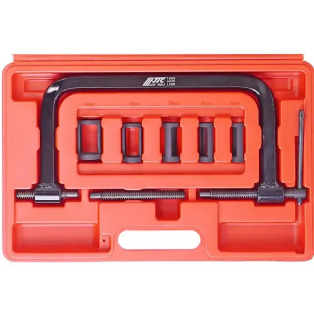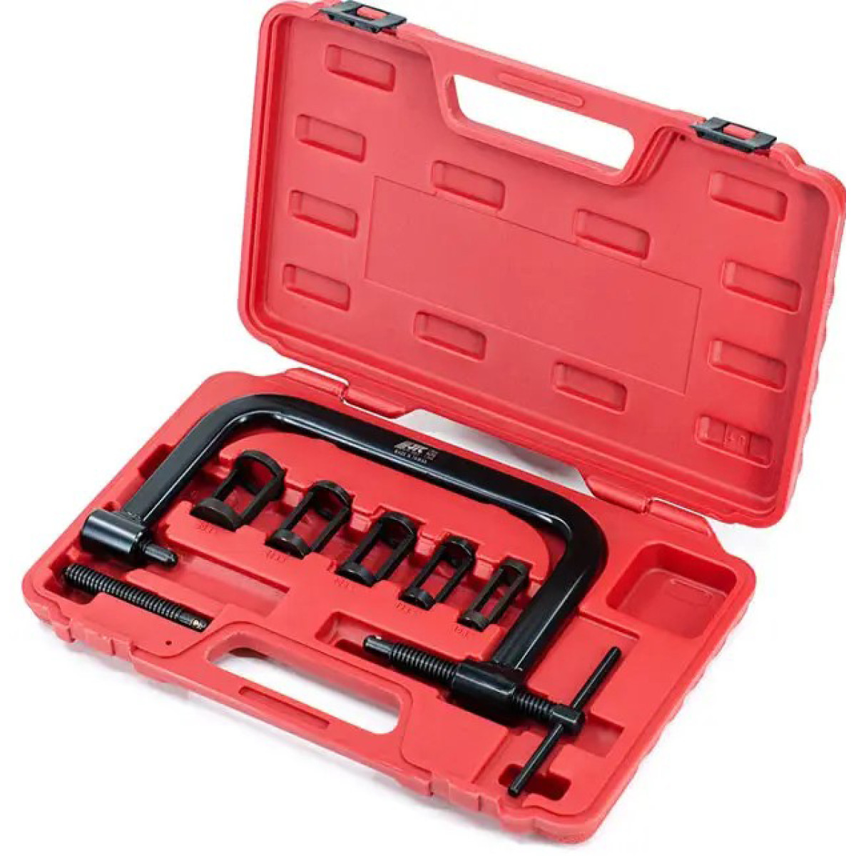 Рассухариватель клапанов струбцинного типа предназначен для сжатия и демонтажа клапанных пружин в двигателях автомобилей и мотоциклов. Инструмент обеспечивает удобную и безопасную работу при обслуживании клапанного механизма. Благодаря прочной конструкции и качественной обработке поверхности устойчив к износу, коррозии и механическим повреждениям. Комплект оснащен сменными толкателями разных размеров, что позволяет работать с различными типами клапанов.