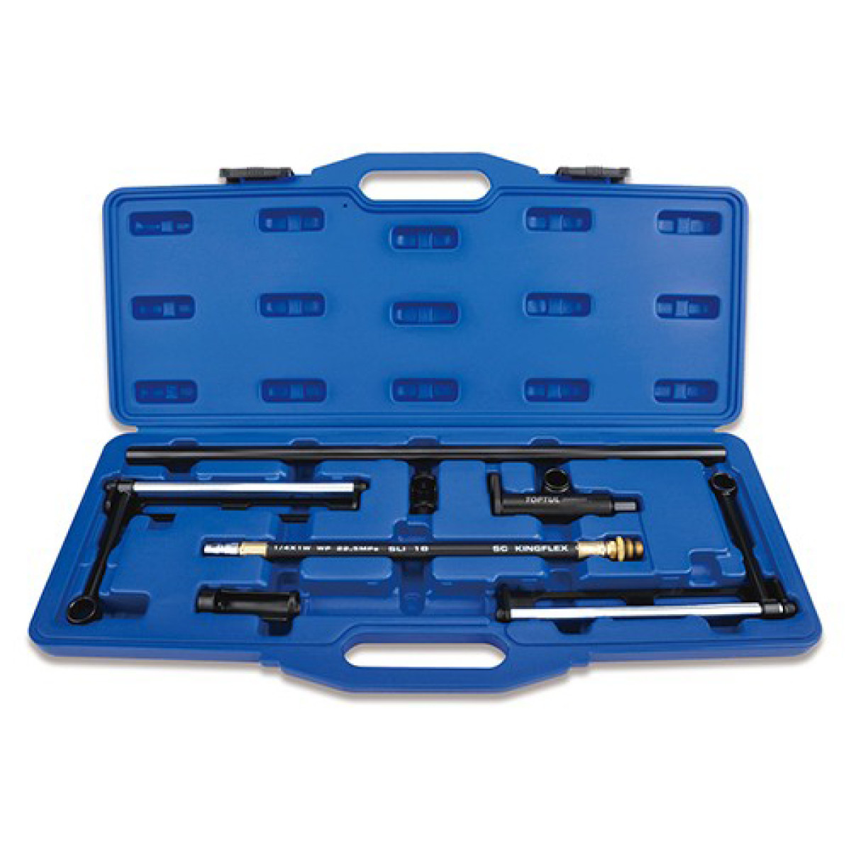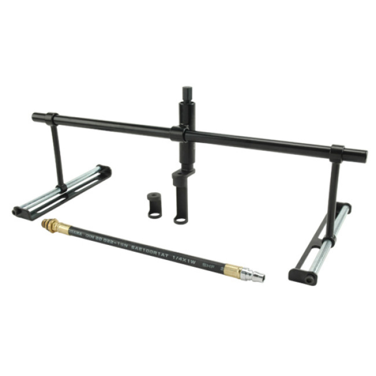 Рассухариватель клапанов универсальный предназначен для обслуживания клапанного механизма двигателя без необходимости снятия головки блока цилиндров. Инструмент подходит для работы с 12-, 16-, 20- и 24-клапанными двигателями и обеспечивает удобное снятие и установку клапанных пружин. Конструкция с резьбовым штоком позволяет надежно фиксировать инструмент в нужном положении, а специальное отверстие в толкателе обеспечивает легкий доступ к сухарям клапана.