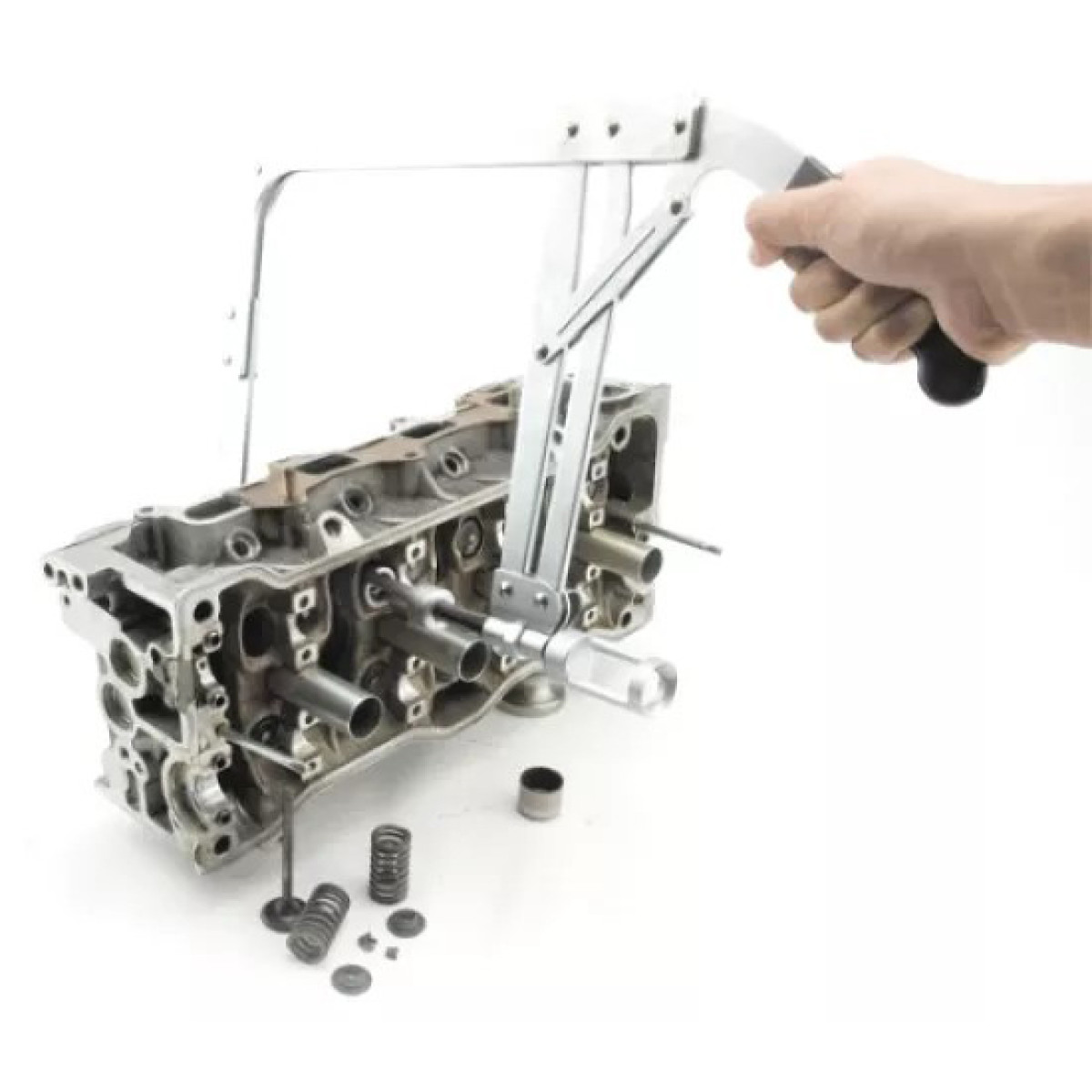 Рассухариватель клапанов струбцинного типа предназначен для работы с многоклапанными двигателями и обеспечивает эффективное сжатие клапанных пружин. Инструмент имеет реверсивный механизм, что позволяет удобно адаптировать его под различные типы клапанов. Благодаря широкому рабочему диапазону подходит для разных двигателей и обеспечивает точность и удобство в работе даже в сложных условиях. Изготовлен из прочных материалов, что гарантирует долговечность и надежность.