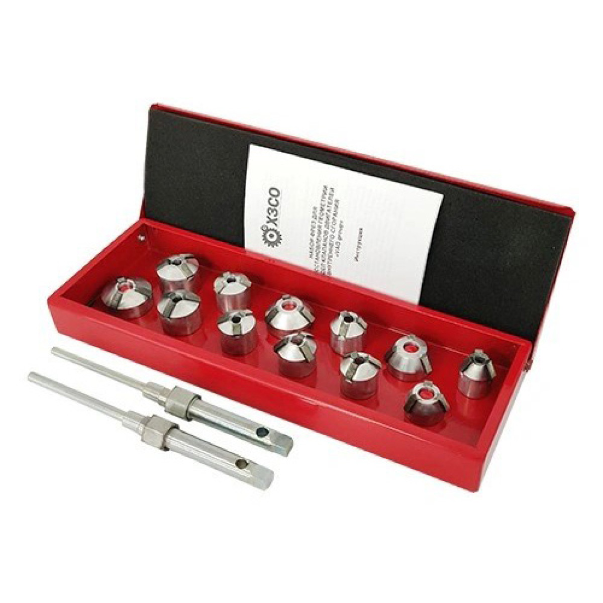 Набор фрез (шарошек) для восстановления геометрии седел клапанов ДВС VAG - предназначен для восстановления геометрии седел клапанов двигателей внутреннего сгорания автомобилей группы VAG. Фрезы имеют режущие ножи с фиксированным положением, то есть нерегулируемые относительно корпуса. Конструкция и размеры инструмента позволяют обрабатывать седла клапанов, обеспечивая значения углов и диаметров согласно рекомендациям завода производителя двигателя. Набор позволяет обрабатывать фаски седел клапанов, обеспечивая рекомендуемые углы 45º, 30º, 30º. Перед началом использования необходимо ознакомиться с инструкцией. При соблюдении условий эксплуатации инструмент имеет длительный срок службы.