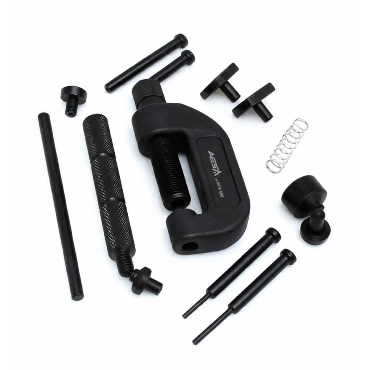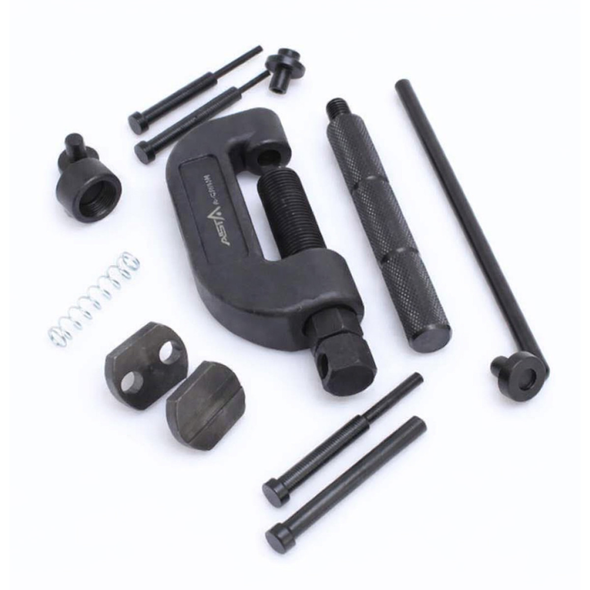 Набор для ремонта мотоциклетной цепи предназначен для расклепывания, клепки и укорачивания различных типов цепей. Инструмент подходит для мотоциклов, велосипедов, автомобилей и другой техники с цепным приводом, обеспечивая точную и безопасную работу. Благодаря прочной конструкции и возможности работы в ограниченном пространстве набор является универсальным решением для мастерских и СТО.