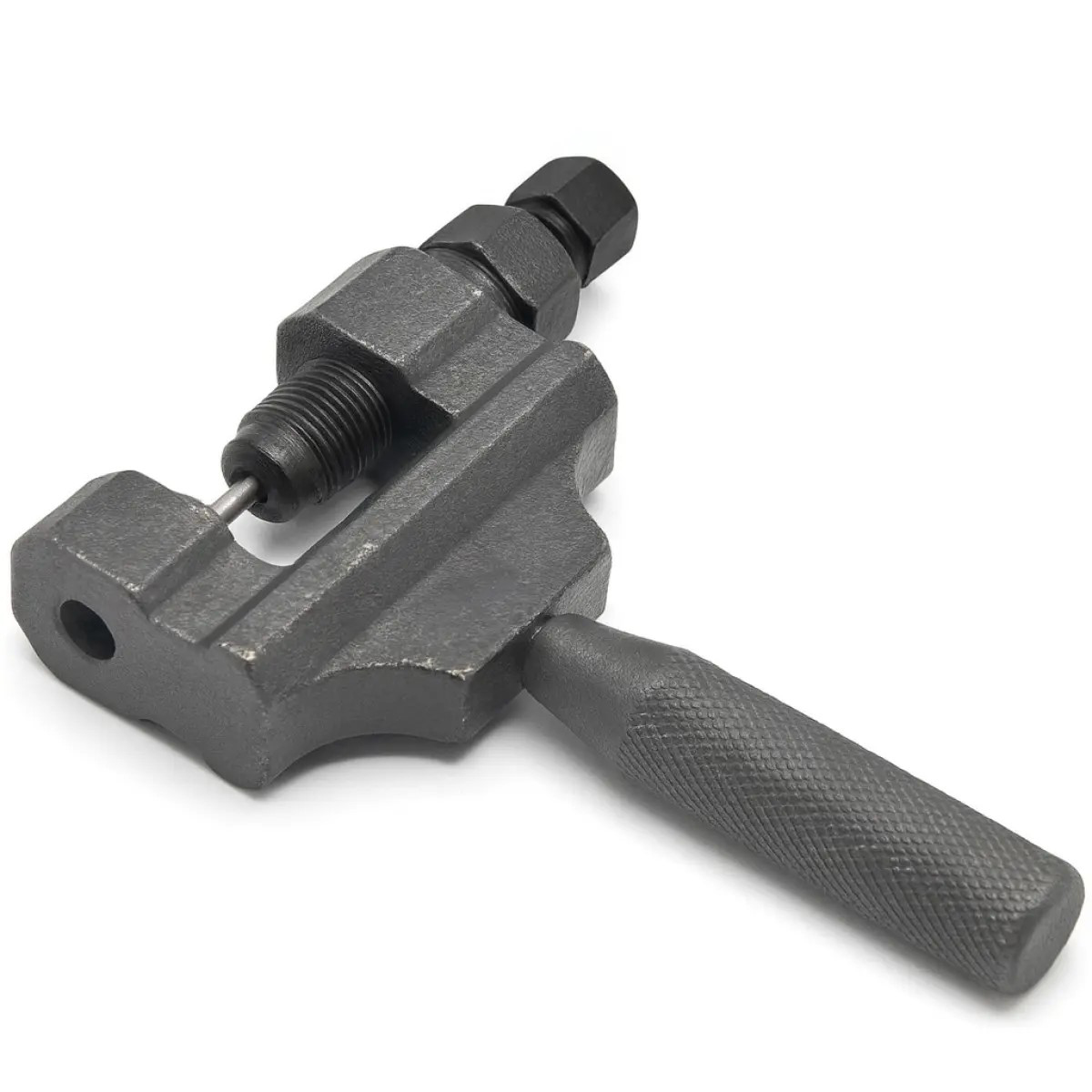 Приспособление для выпрессовки/запрессовки цепи предназначено для обслуживания приводных цепей мотоциклов и другой техники. Инструмент обеспечивает безопасное и удобное извлечение и установку соединительных штифтов цепи без повреждения элементов. Компактная винтовая конструкция позволяет создавать равномерное усилие и выполнять точные работы даже в сложных условиях.
