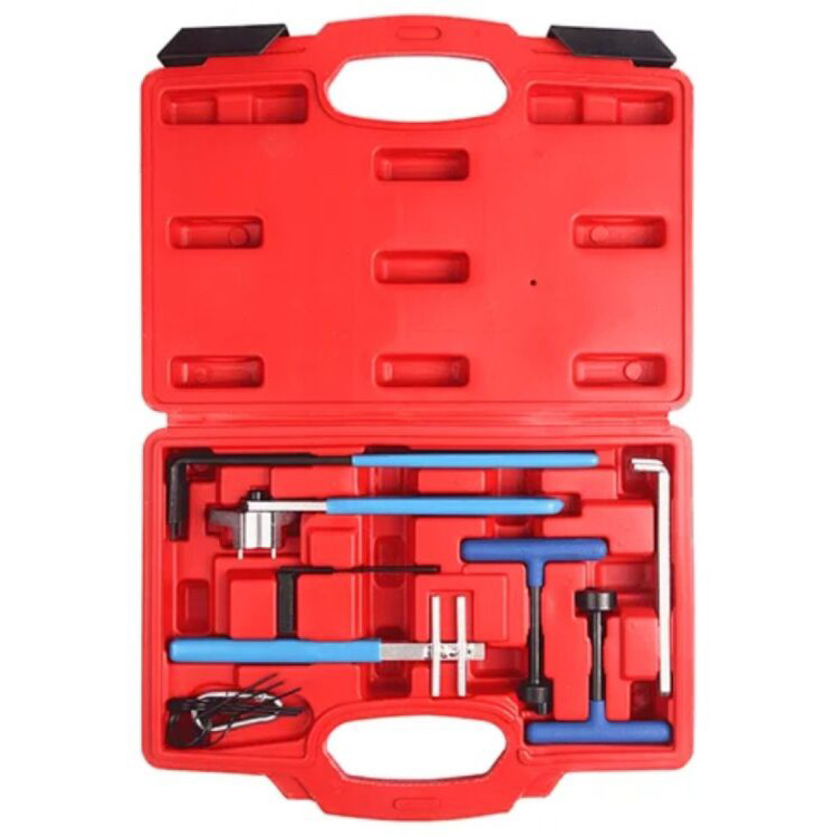 Набор инструментов для натяжения ремня ГРМ предназначен для точной регулировки натяжного ролика на бензиновых и дизельных двигателях. Комплект включает различные рычаги и ключи, что позволяет эффективно выполнять замену ремня ГРМ даже в труднодоступных местах. Обеспечивает правильную настройку натяжения, что предотвращает перескок или обрыв ремня.