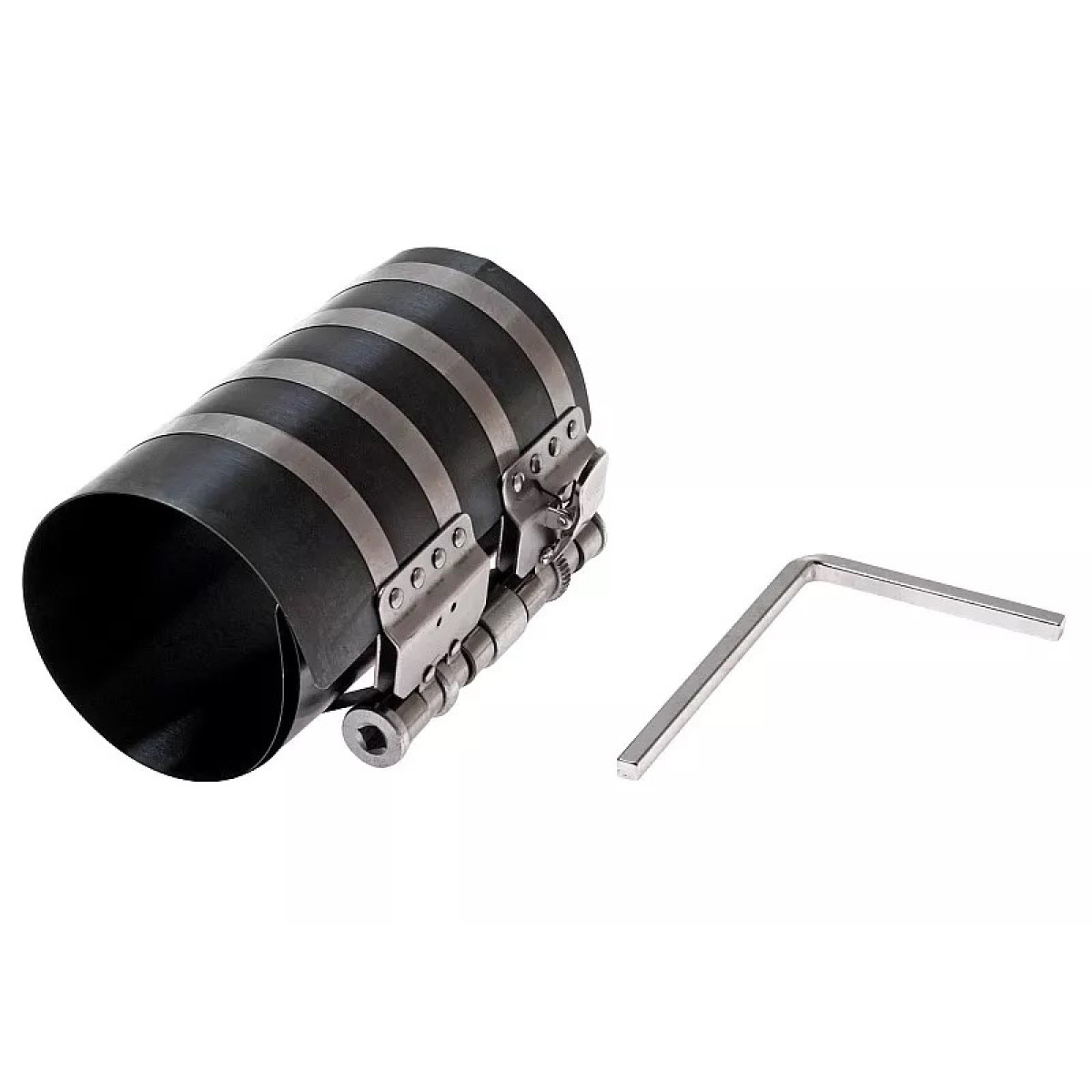 Оправка поршневых колец ⌀90–175 мм, H 150 мм предназначена для сжатия поршневых колец при установке поршней в цилиндры двигателя. Инструмент обеспечивает равномерное распределение нагрузки на кольца, минимизируя риск их деформации. Благодаря продуманной конструкции и автоматической фиксации обеспечивается удобство и надежность в работе. Эргономичная форма позволяет комфортно удерживать инструмент и повышает точность выполнения работ. Изготовлен из высококачественной пружинной стали, что гарантирует долговечность и устойчивость к износу.
