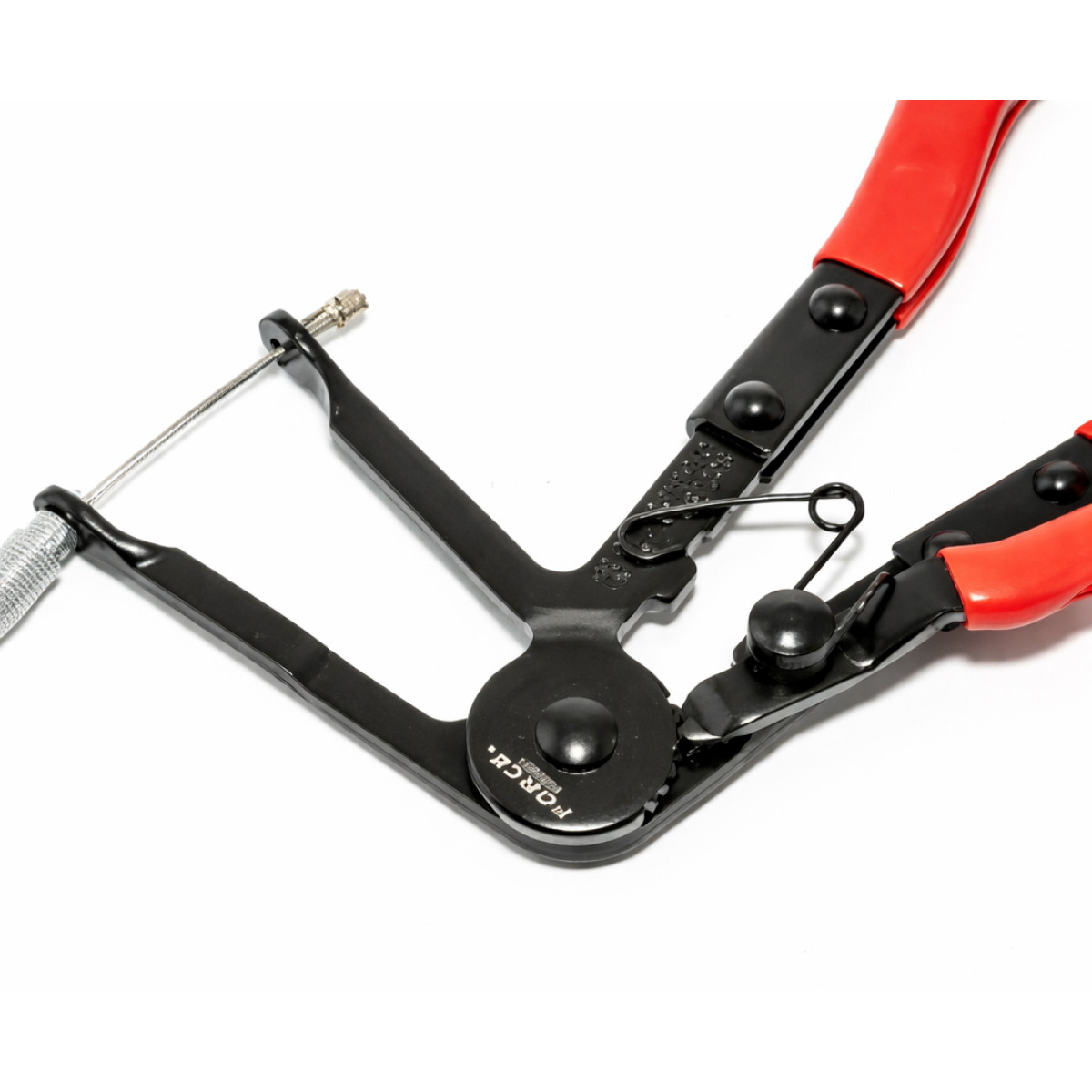 Съемник хомутов гибкий предназначен для снятия пружинных хомутов с топливных трубопроводов и патрубков системы охлаждения. Инструмент также используется для работы с масляными и водяными шлангами. Гибкий трос длиной 630 мм обеспечивает доступ к труднодоступным местам. Позволяет удобно выполнять демонтаж и монтаж хомутов. Изготовлен из хром ванадиевой стали что обеспечивает высокую прочность. Метод ковки с термообработкой гарантирует долговечность. Инструмент соответствует стандартам DIN и ISO 9001 и ISO 9002. Обладает высокой устойчивостью к коррозии.
