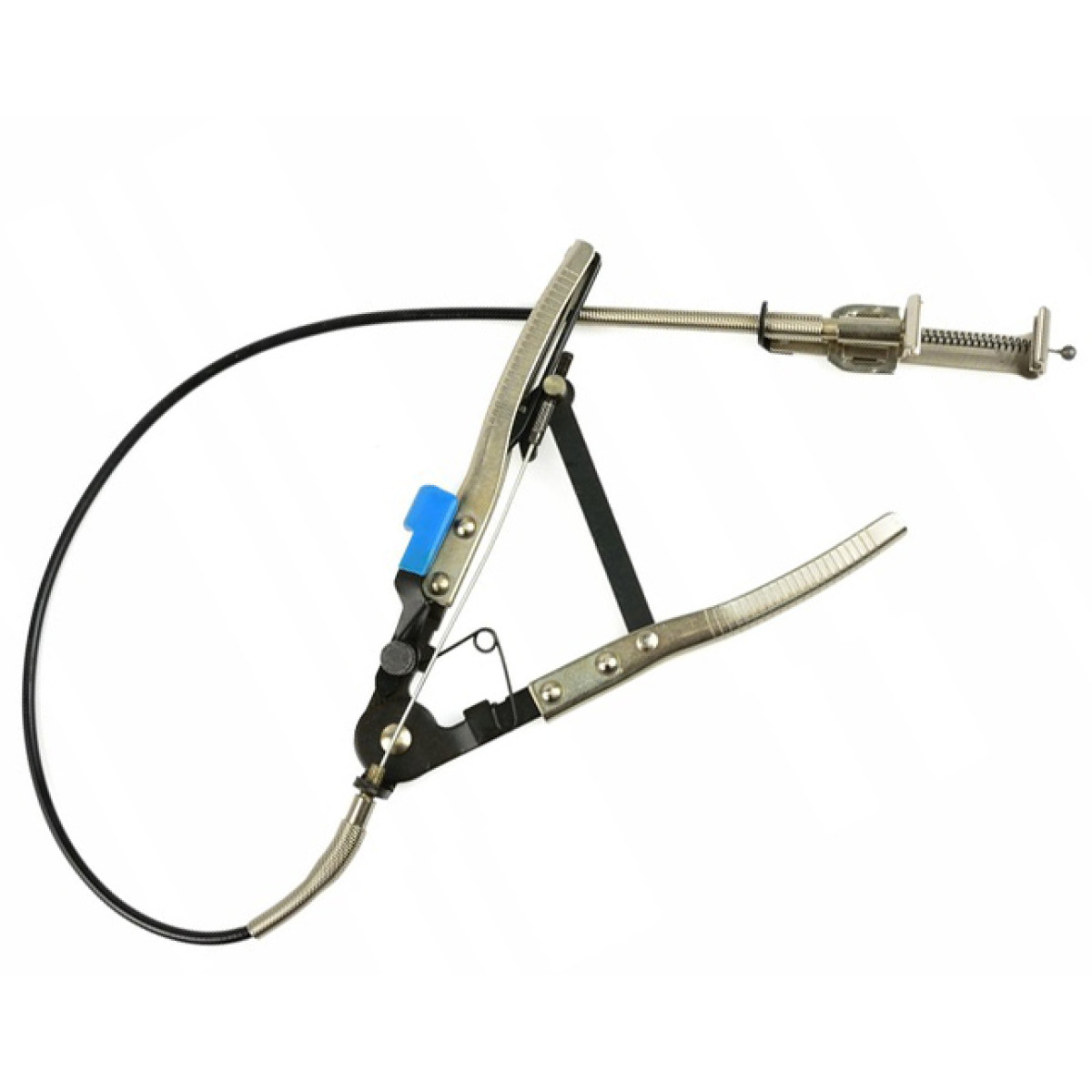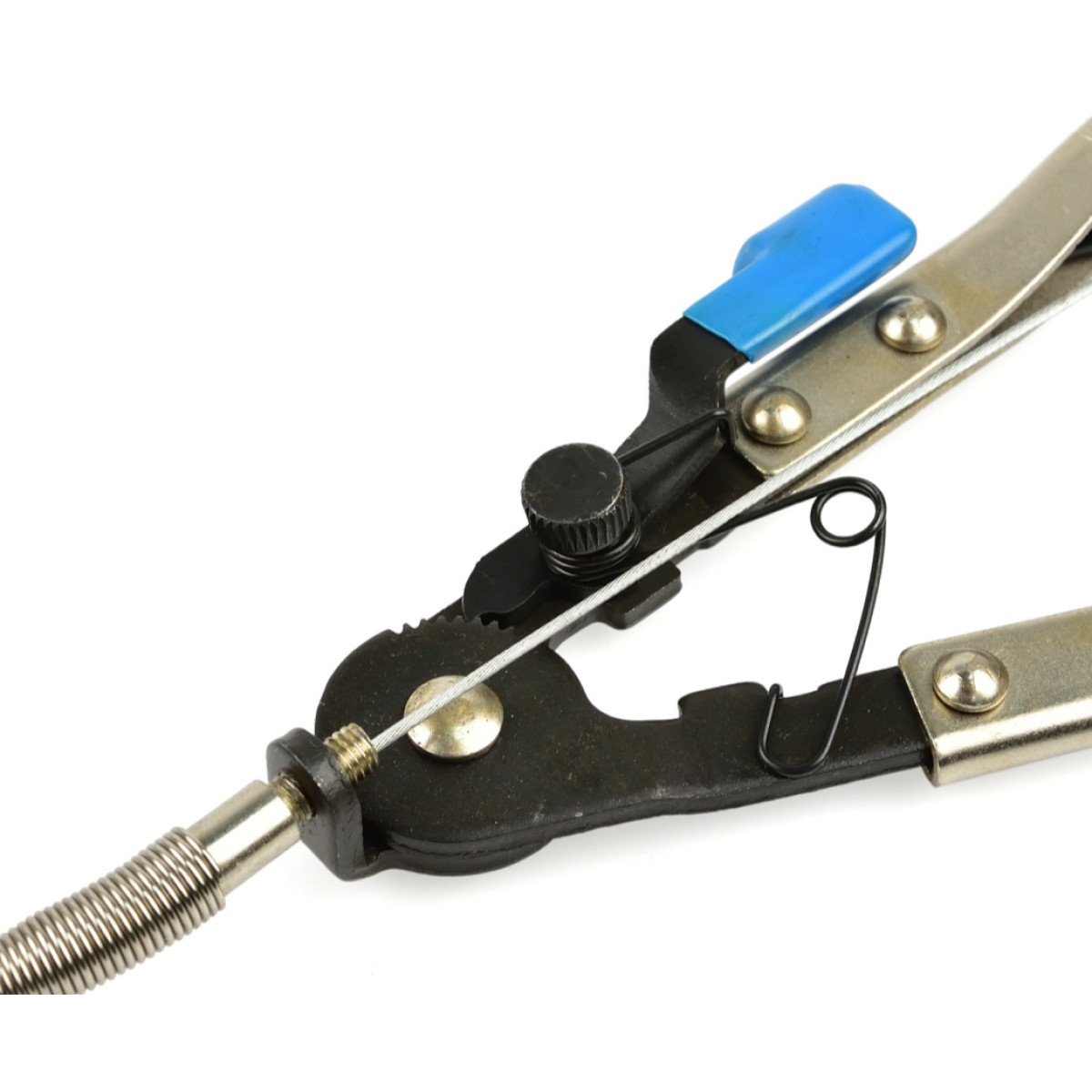 Щипцы предназначены для быстрого и удобного снятия и установки компенсационных (пружинных) хомутов, используемых на резиновых шлангах систем охлаждения, кондиционирования и вентиляции автомобиля. Гибкий удлинитель позволяет эффективно работать в труднодоступных местах моторного отсека без необходимости демонтажа дополнительных компонентов.