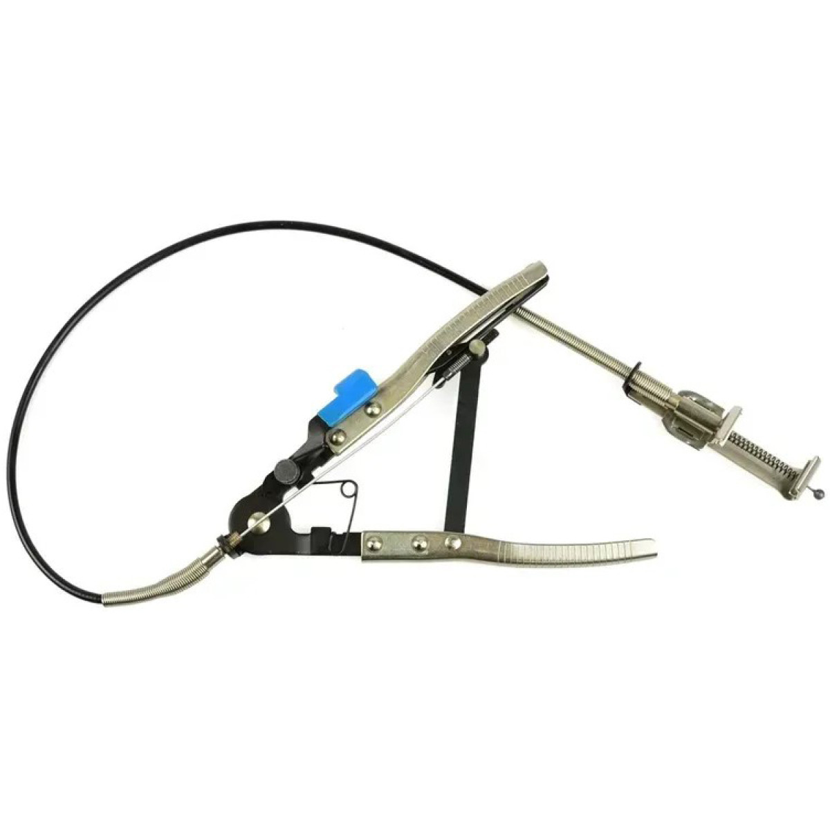 Щипцы предназначены для снятия и установки пружинных хомутов на резиновых патрубках в системах охлаждения, топливных системах и системах кондиционирования автомобиля. Инструмент позволяет выполнять работы в труднодоступных местах, где использование обычных инструментов затруднено. Гибкий удлинитель со стальным тросом длиной 655 мм обеспечивает удобный доступ к хомутам в глубоких или ограниченных зонах моторного отсека. Благодаря механизму фиксации щипцы удерживают хомут в открытом положении, что значительно облегчает демонтаж и установку. Прочная стальная конструкция инструмента гарантирует долговечность и надежность при интенсивной эксплуатации.