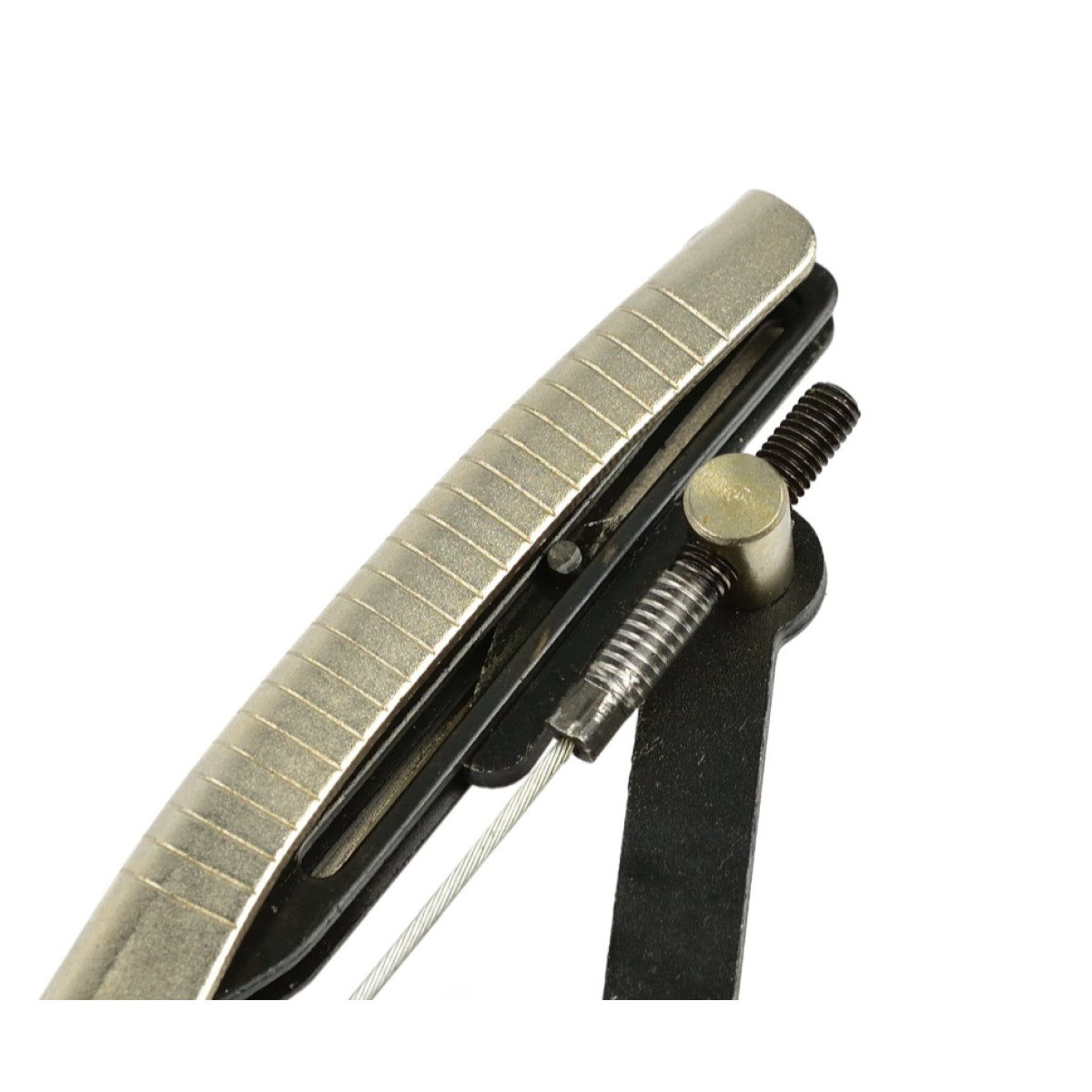 Прочная стальная рукоятка с поперечными противоскользящими насечками обеспечивает надёжный захват и точный контроль инструмента во время работы. Запорный механизм фиксирует хомут в открытом положении, значительно облегчая монтаж и демонтаж.
