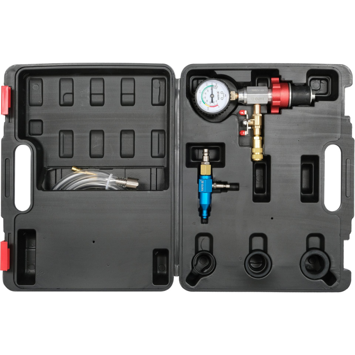 прибор для вакуумной заправки системы охлаждения YATO YT-72996, набор для замены охлаждающей жидкости YATO, вакуумный инструмент для системы охлаждения авто, комплект для заправки радиатора Ø30–48 мм
