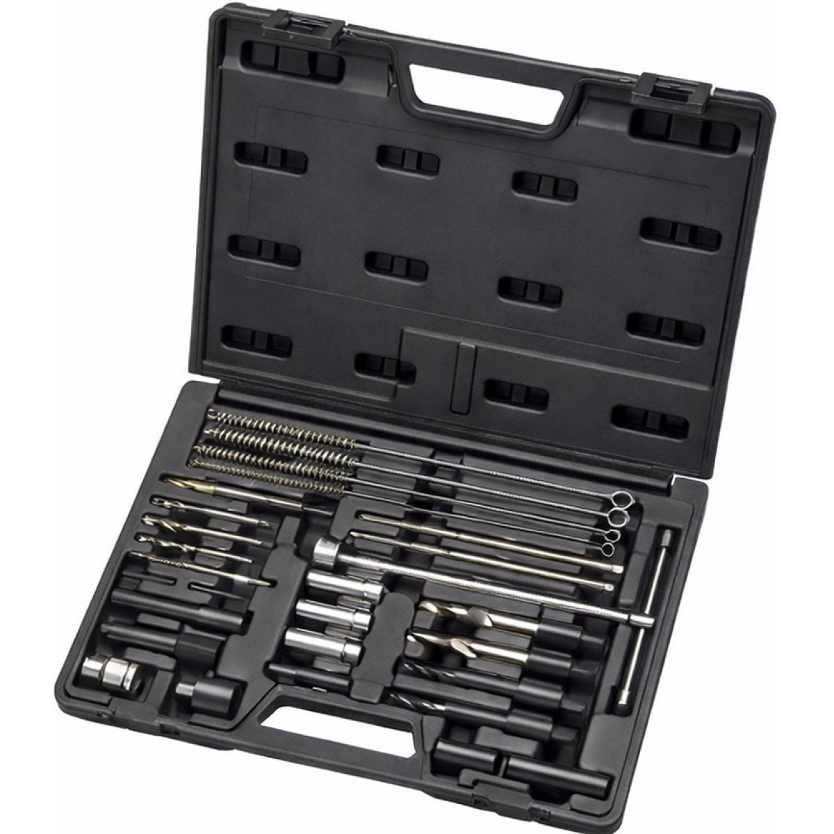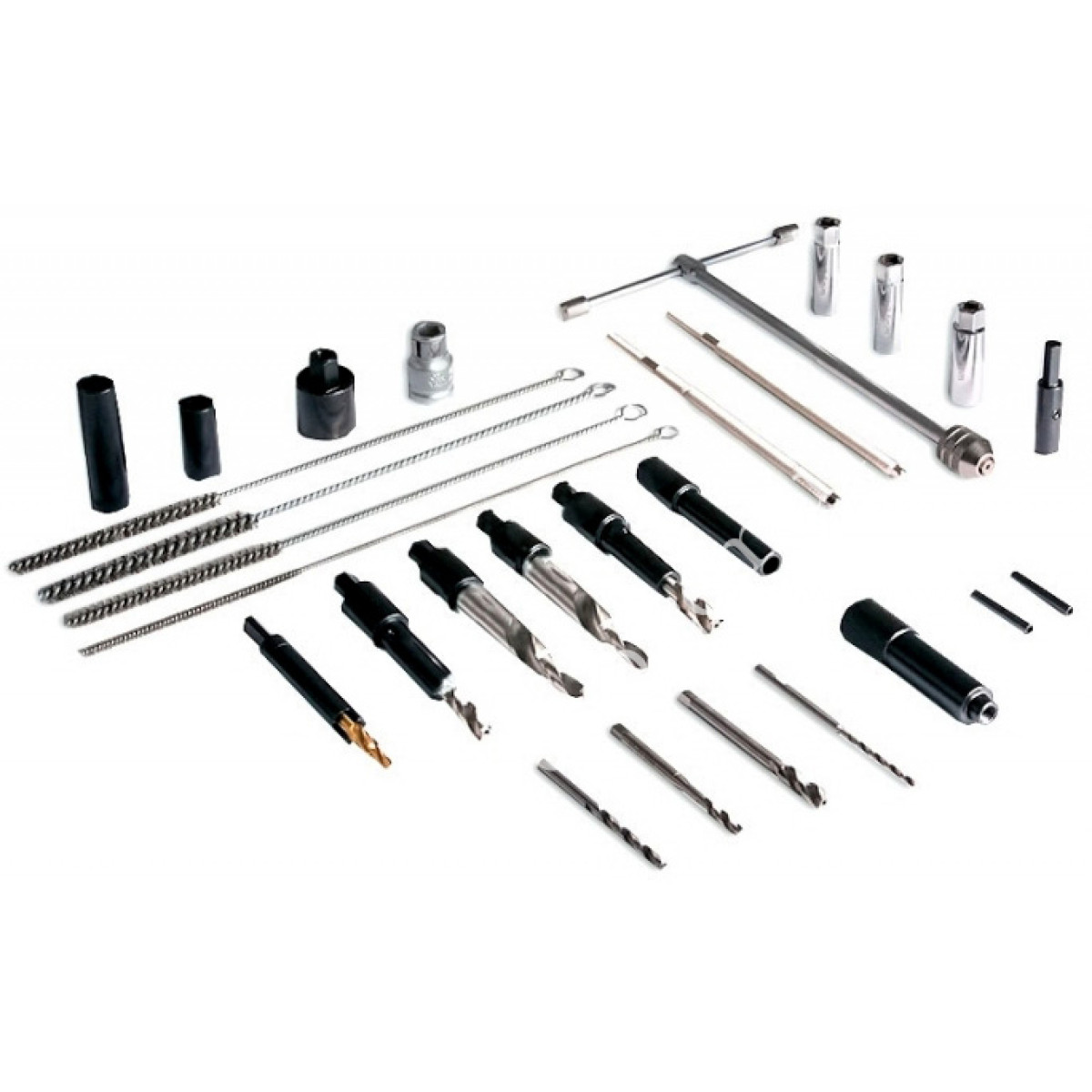 Набор предназначен для и . Комплект позволяет выполнять сложные ремонтные операции без повреждения резьбы и элементов двигателя. Инструмент применяется для свечей с резьбой , обеспечивая . Подходит для профессионального использования в автосервисах.