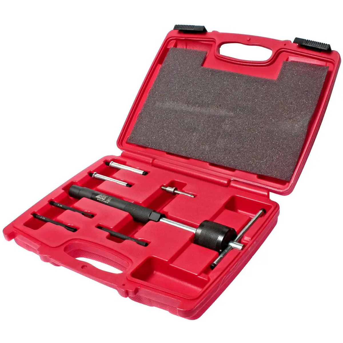 Набор предназначен для в дизельных двигателях (CDI и др.). Позволяет безопасно извлекать поврежденные элементы без снятия головки блока цилиндров. Инерционный съемник в сочетании с цанговыми захватами и конусными держателями обеспечивает надежную фиксацию и контролируемое извлечение, что минимизирует риск повреждения посадочного отверстия. Инструмент изготовлен из , что гарантирует долговечность и защиту от коррозии.