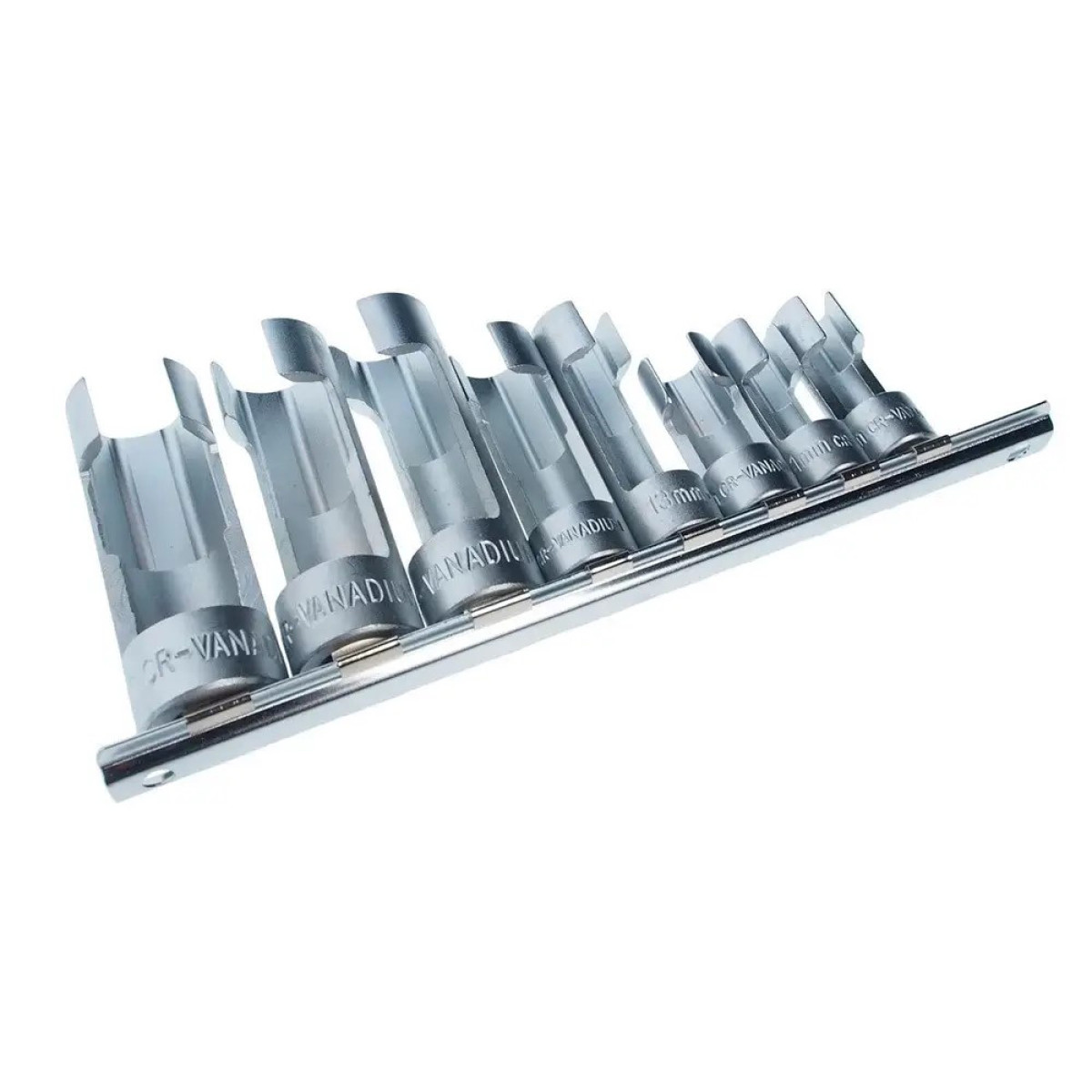 Набор JTC 6609 применяется при демонтаже датчиков лямбда-зонда, форсунок, топливных линий и других элементов в труднодоступных местах. Комплект глубоких разрезных головок обеспечивает удобный доступ к соединениям без повреждения проводов и компонентов. Головки изготовлены из хром-ванадиевой стали, что гарантирует прочность и долговечность при интенсивной эксплуатации. Используются совместно с воротком с посадочным квадратом 3/8" или 1/2".