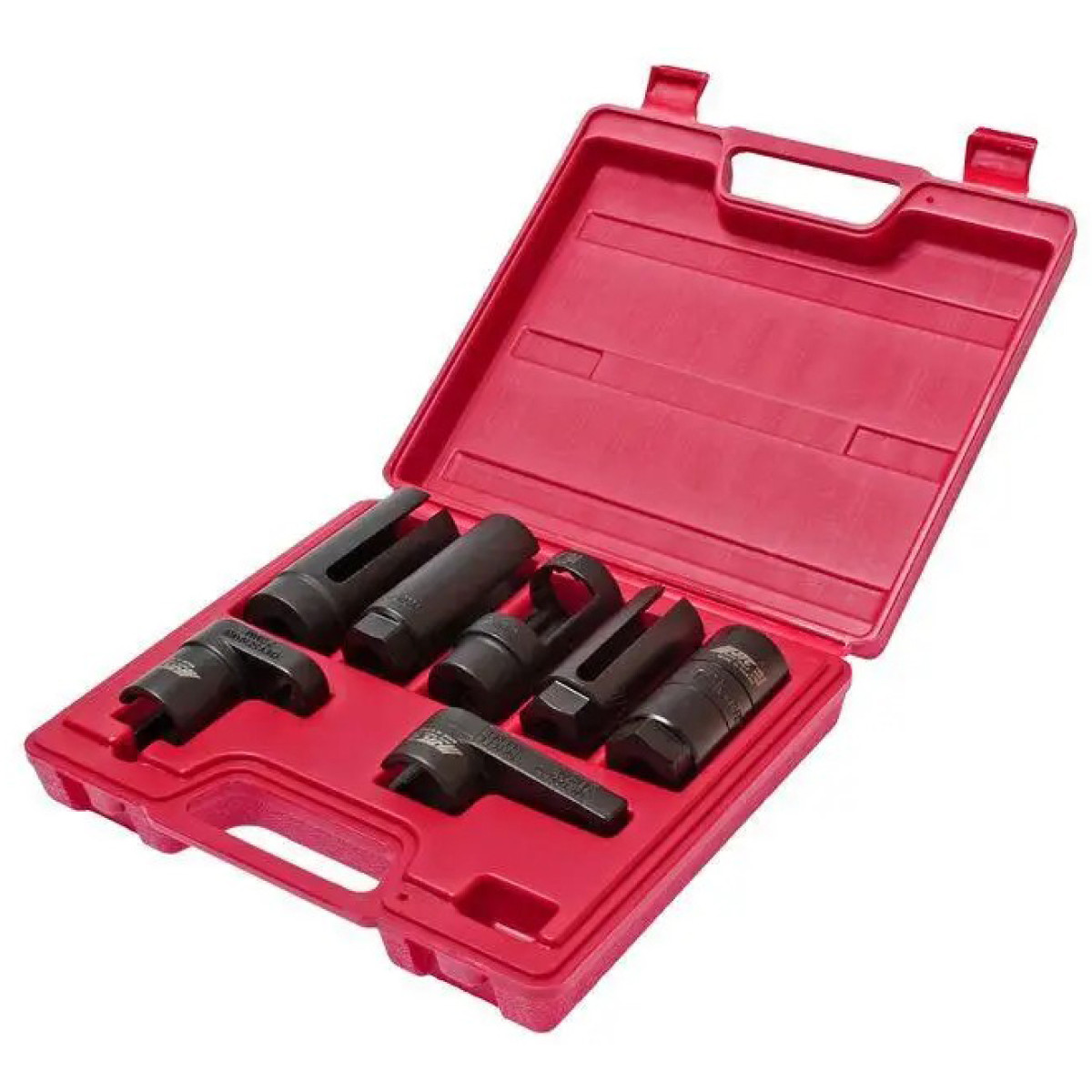 Набор предназначен для демонтажа датчика кислорода, лямбда-зонда и форсунок. В набор входят специальные головки для снятия кислородных датчиков, которые позволяют выполнять работы без повреждения проводов и элементов топливной системы. Инструмент обеспечивает удобный доступ в труднодоступных местах и подходит для профессионального использования. Упакован в прочный переносной кейс для хранения и транспортировки.