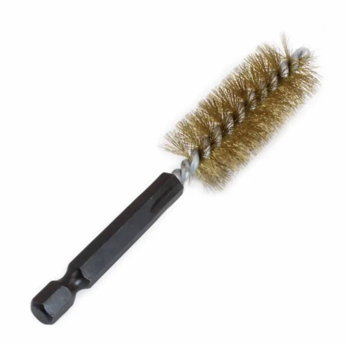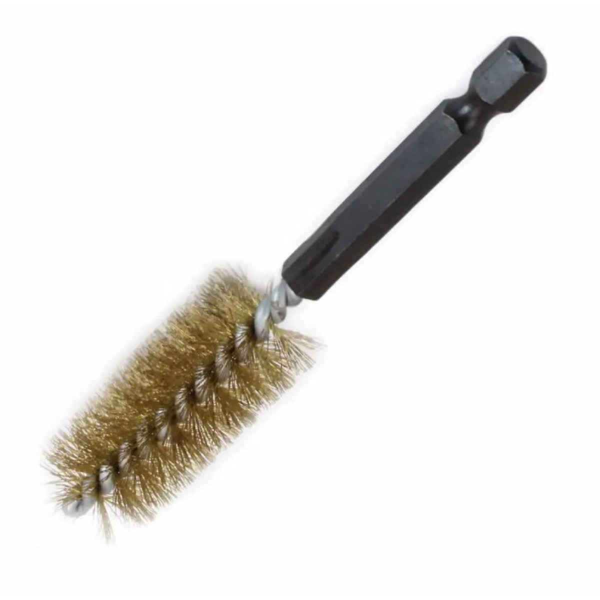 Щетка-ершик 25 мм стальная с латунным покрытием предназначена для использования с дрелью или шуруповертом. Применяется для очистки посадочных мест топливных форсунок и других труднодоступных полостей от нагара и коррозии. Специально изготовлена для очистки внутренних стенок трубок и каналов. Оснащена хвостовиком для установки в патрон дрели с возможностью быстрой фиксации.