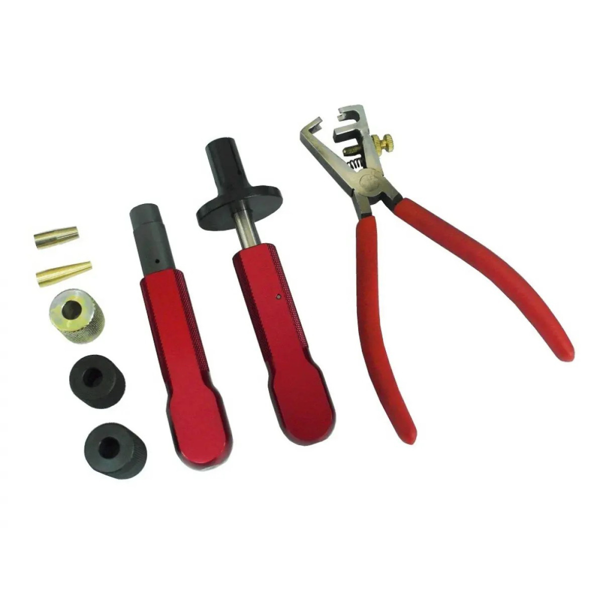 Профессиональный комплект предназначен для замены тефлоновых сальников топливных форсунок бензиновых двигателей BMW. Материал тефлонового уплотнения рассчитан на расширение после установки в отверстие инжектора для обеспечения надежной герметичности. Инструмент предусматривает два способа сжатия уплотнения в зависимости от кода двигателя и типа форсунки. Изготовлен из хромованадиевой стали методом ковки с последующей термообработкой, что обеспечивает высокую прочность, устойчивость к излому и длительный срок службы. Обладает повышенной коррозионной стойкостью и соответствует стандартам DIN, ISO 9001 и ISO 9002.