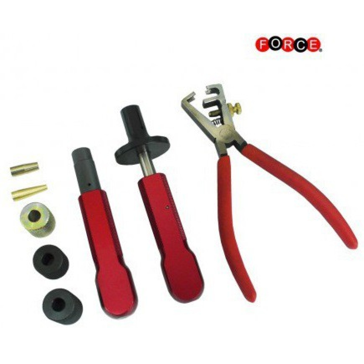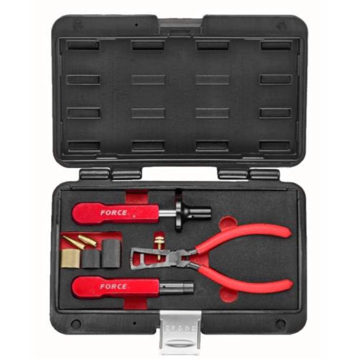 Специализированный набор FORCE 908G10A предназначен для демонтажа, установки и обжима уплотнений топливных форсунок в бензиновых двигателях BMW. Инструмент обеспечивает правильную установку уплотнительных колец без повреждений, что важно для герметичности камеры сгорания.