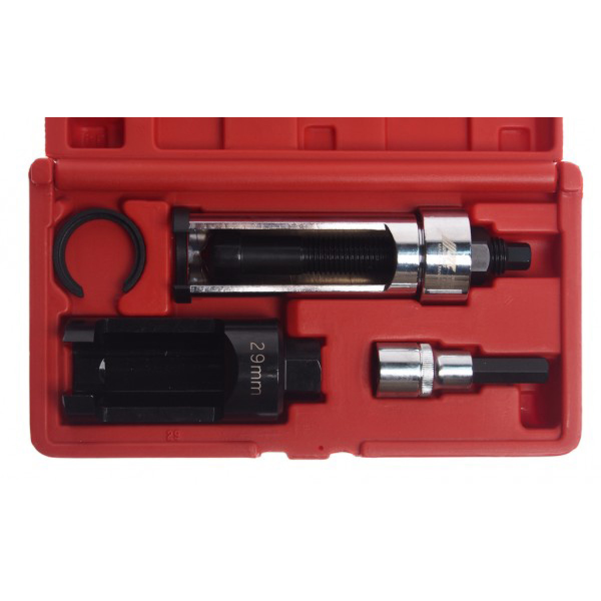 Специально разработанный съёмник для демонтажа дизельных форсунок на двигателях MERCEDES с системой CDI (Common Rail Diesel Injection), выпускаемых с 1998 года. Комплект оснащён головкой для снятия форсунки, специальным защитным шестигранным ключом для демонтажа внутренней части форсунки Bosch и валом с подшипником в упорном корпусе для защиты головки блока цилиндров. Позволяет выполнять демонтаж форсунок без снятия головки блока цилиндров. Подходит преимущественно для автомобилей C-класса, E-класса и Sprinter. Значительно экономит время при ремонте.