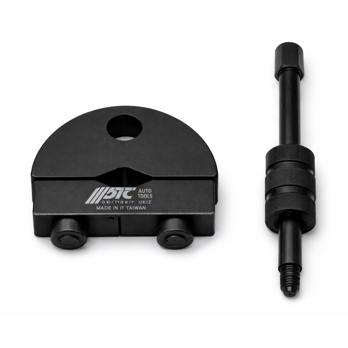 Зажим для демонтажа форсунки предназначен для удерживания подвижного стержня и снятия форсунки с помощью пневмомолотка. Специально разработан для быстрого и безопасного демонтажа форсунок. Значительно экономит время при выполнении работ. Используется совместно с JTC-4530 и JTC-4529. Инструмент проходит процесс микро-полировки (micro finished), что защищает поверхность от царапин и коррозии. Пневматический привод существенно ускоряет процесс извлечения даже сильно закисших форсунок по сравнению с ручными съёмниками. Конструкция зажима обеспечивает равномерное распределение усилия и предотвращает деформацию корпуса форсунки. Предназначен для интенсивного использования в условиях автосервиса.