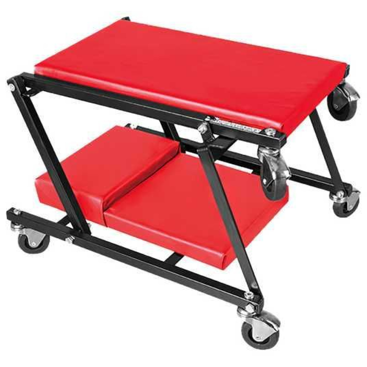 Подкатной лежак TORIN TR6505 — универсальное устройство 2 в 1, которое используется как полноценный лежак для работы под автомобилем или как удобное слесарное сиденье. Усиленный стальной каркас из квадратного профиля обеспечивает прочность и надёжность конструкции.