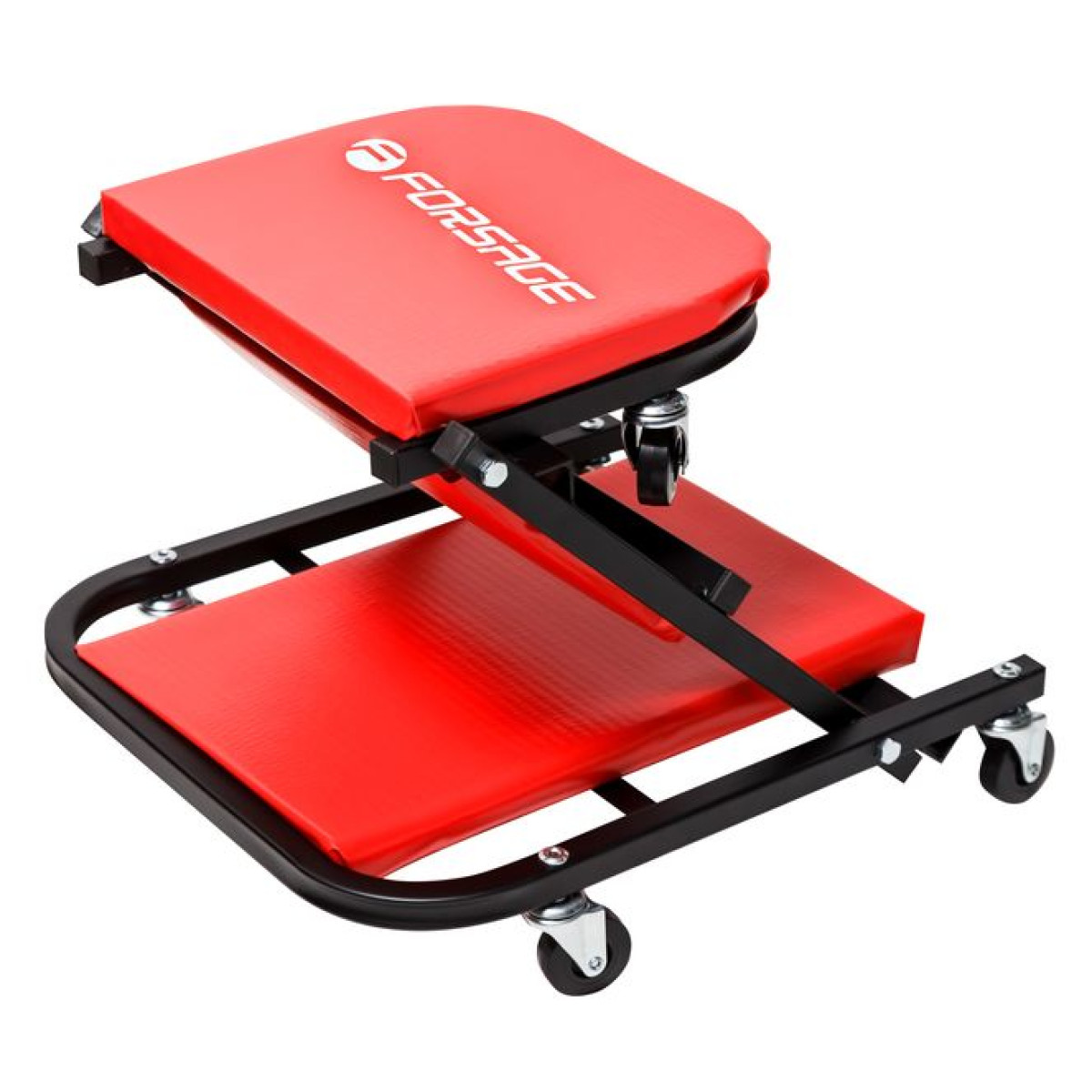Толстая мягкая подушка обеспечивает комфорт при длительных работах, а 6 маслостойких поворотных колёс дают отличную манёвренность даже в стеснённых условиях.