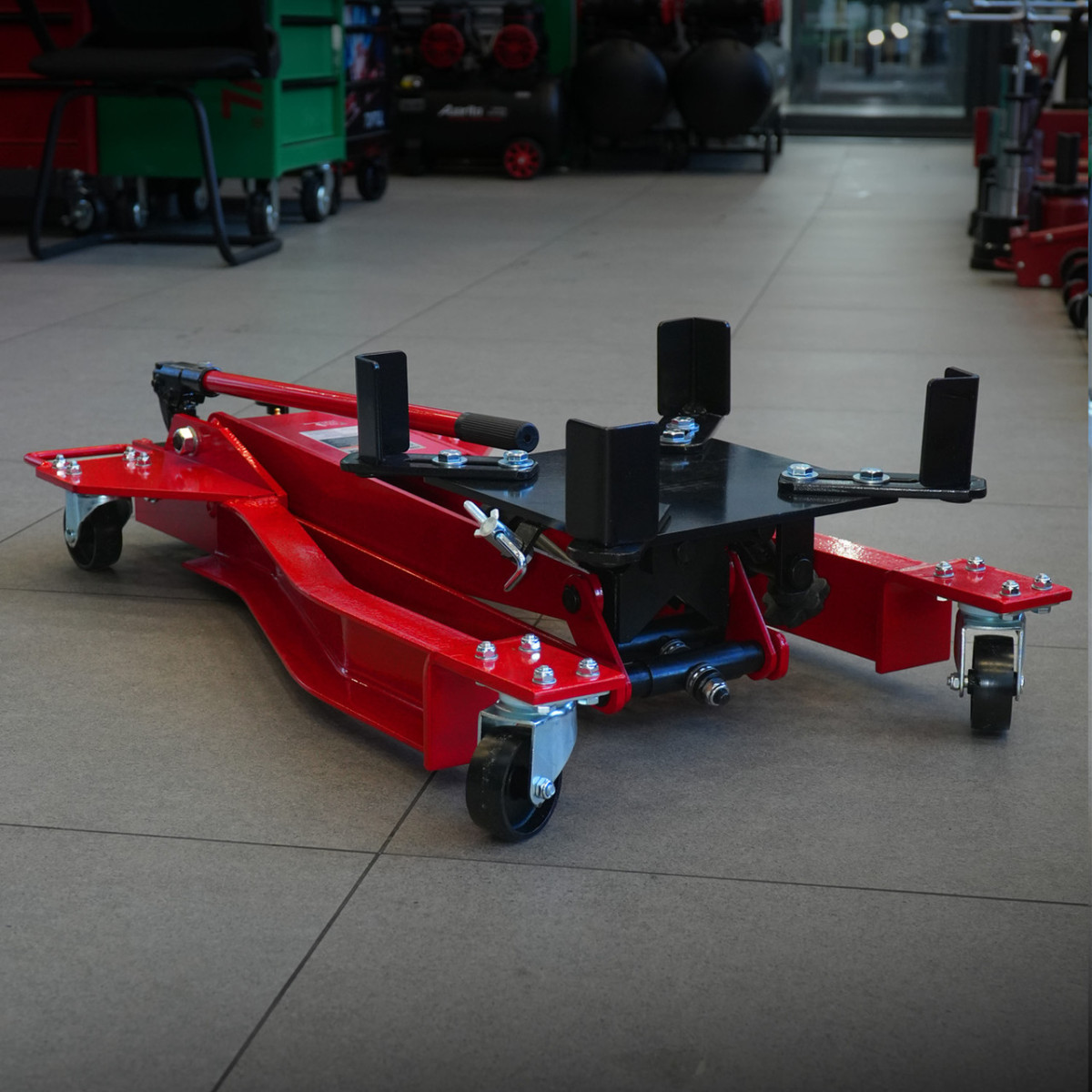 Гидравлическая система позволяет плавно поднимать и точно позиционировать агрегаты. Широкий диапазон высоты делает домкрат универсальным для разных типов автомобилей.