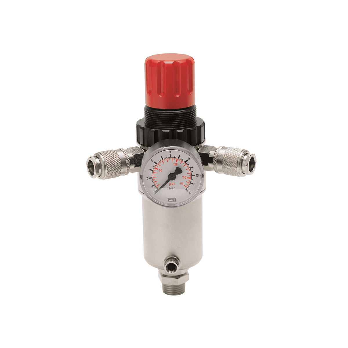 Редуктор позволяет плавно настраивать рабочее давление в диапазоне 0-12 бар в соответствии с требованиями подключенного оборудования. Прочная конструкция и качественные материалы гарантируют надежность и длительный срок службы при интенсивной эксплуатации.