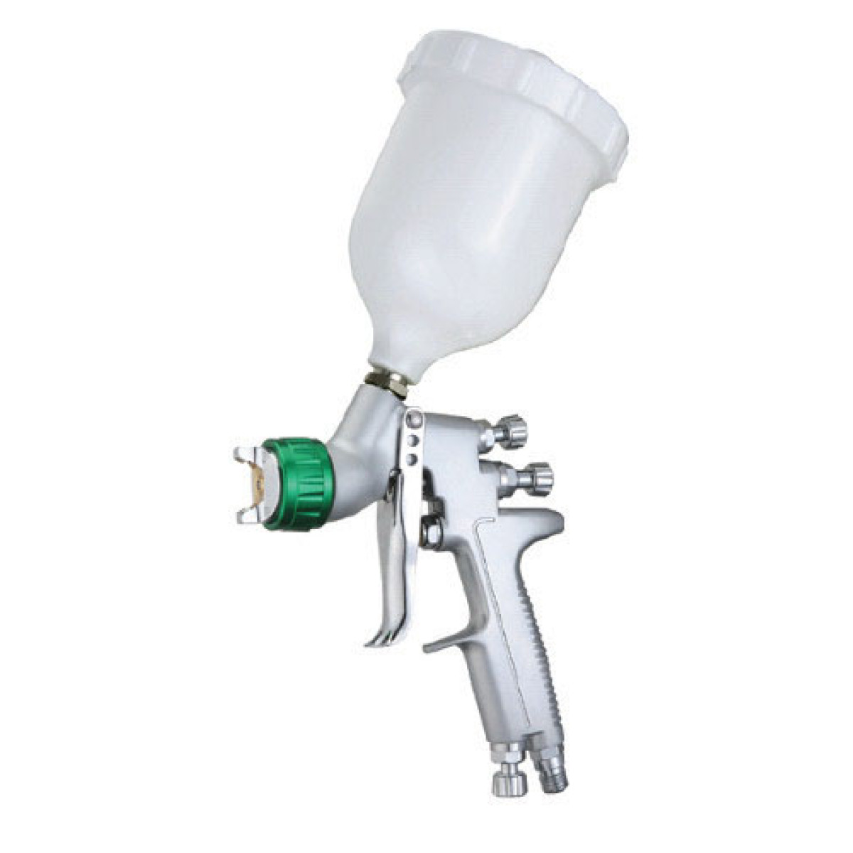 Краскопульт с верхним пластиковым бачком объёмом 600 мл и форсункой 1,3 мм предназначен для нанесения водоэмульсионных красок и различных лакокрасочных материалов. Технология обеспечивает экономичный расход краски, равномерное покрытие и сниженное образование тумана.