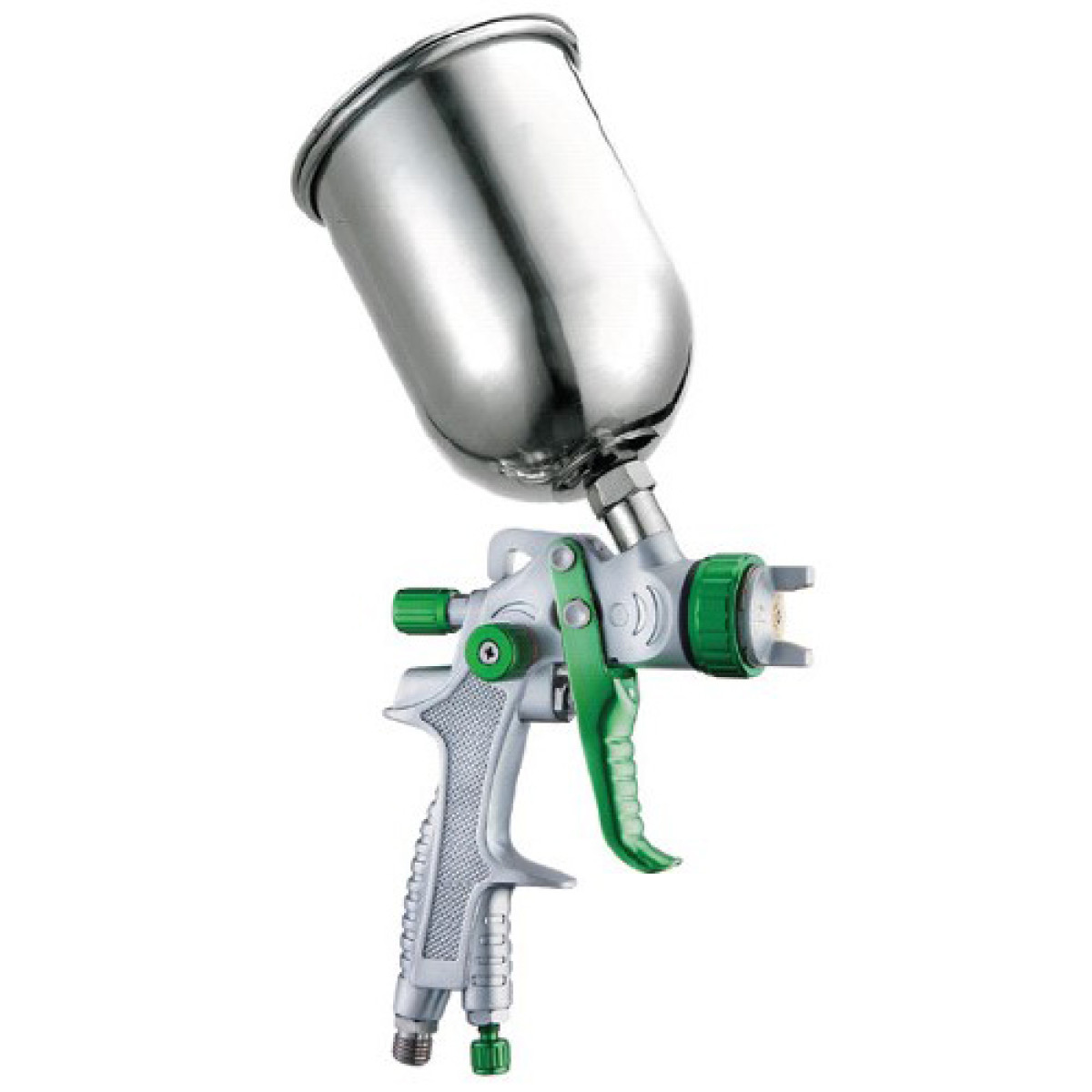 Краскопульт с системой предназначен для равномерного и экономного нанесения лакокрасочных материалов. Форсунка делает его универсальным решением для базовых и финишных задач, а верхний металлический бачок объёмом обеспечивает долговечность и удобство в работе.