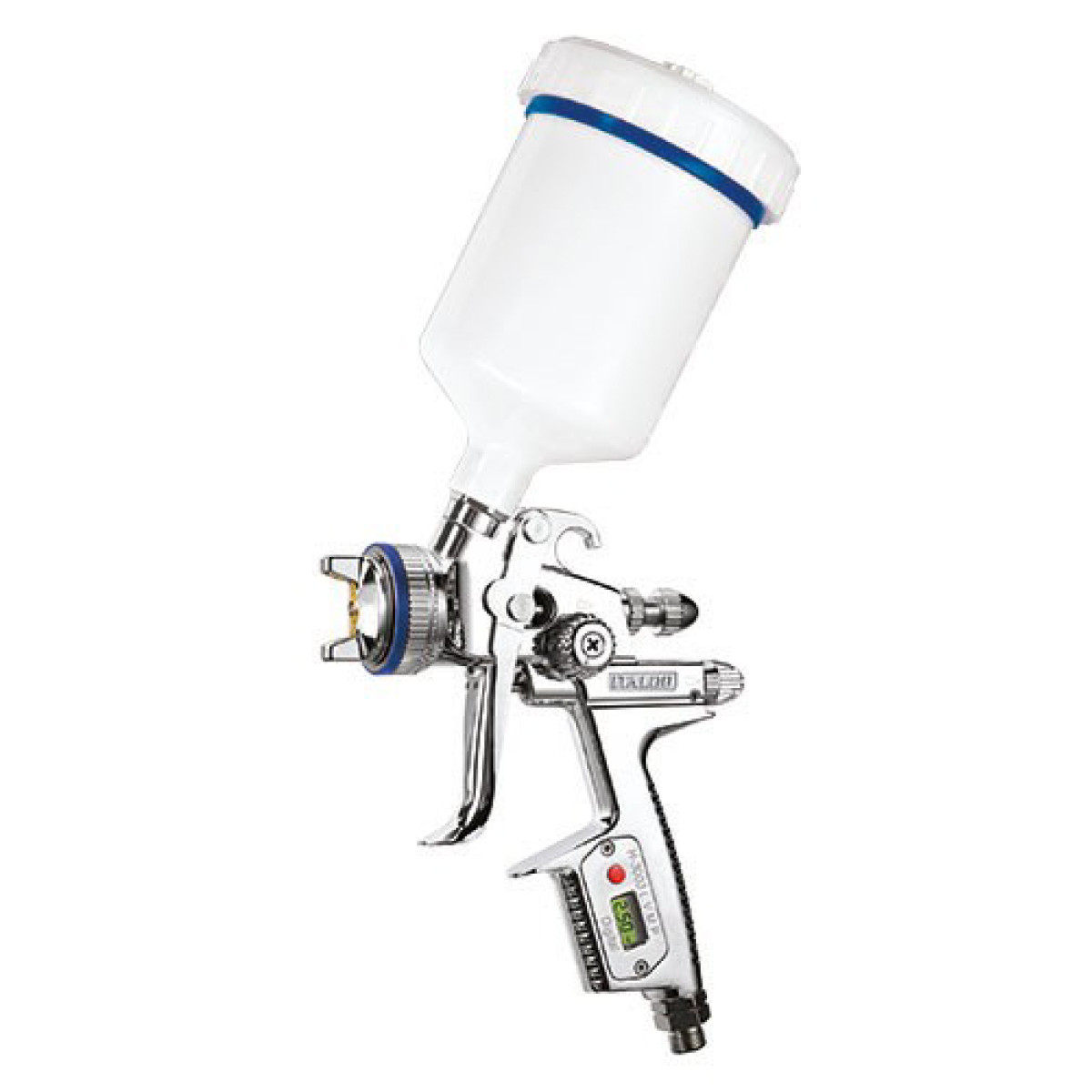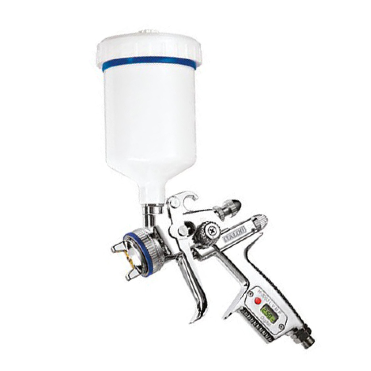Краскопульт - профессиональный инструмент для точного и качественного нанесения лакокрасочных материалов. Технология сочетает малый объём воздуха и среднее давление, обеспечивая равномерное распыление, экономию материала и минимальное туманообразование. Встроенный электронный датчик давления позволяет точно контролировать параметры во время работы.