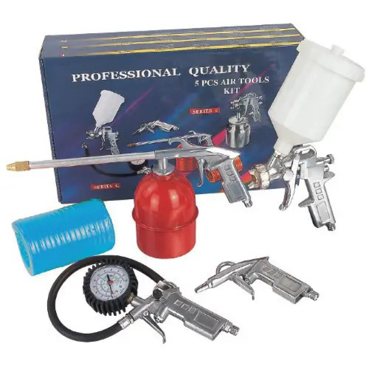 Набор пневмоинструментов - это . В состав входит с и форсункой , а также продувочный пистолет, распылитель для жидкостей, пистолет для шин с манометром и с быстросъёмным соединением. Набор идеально подходит для , обеспечивая стабильную подачу воздуха и удобство работы.