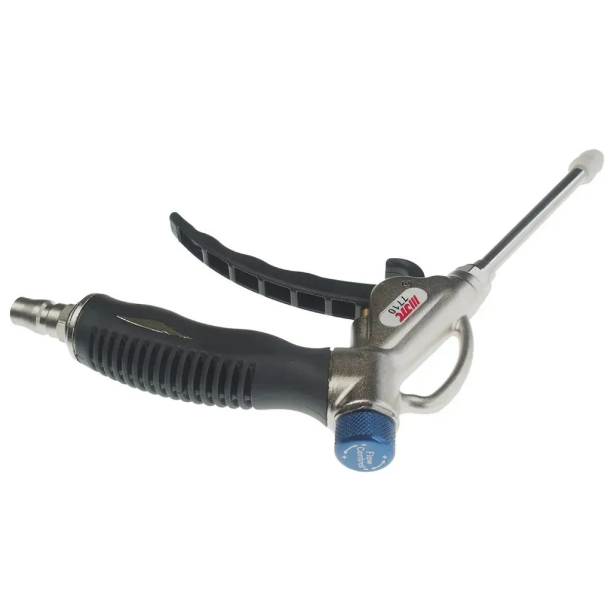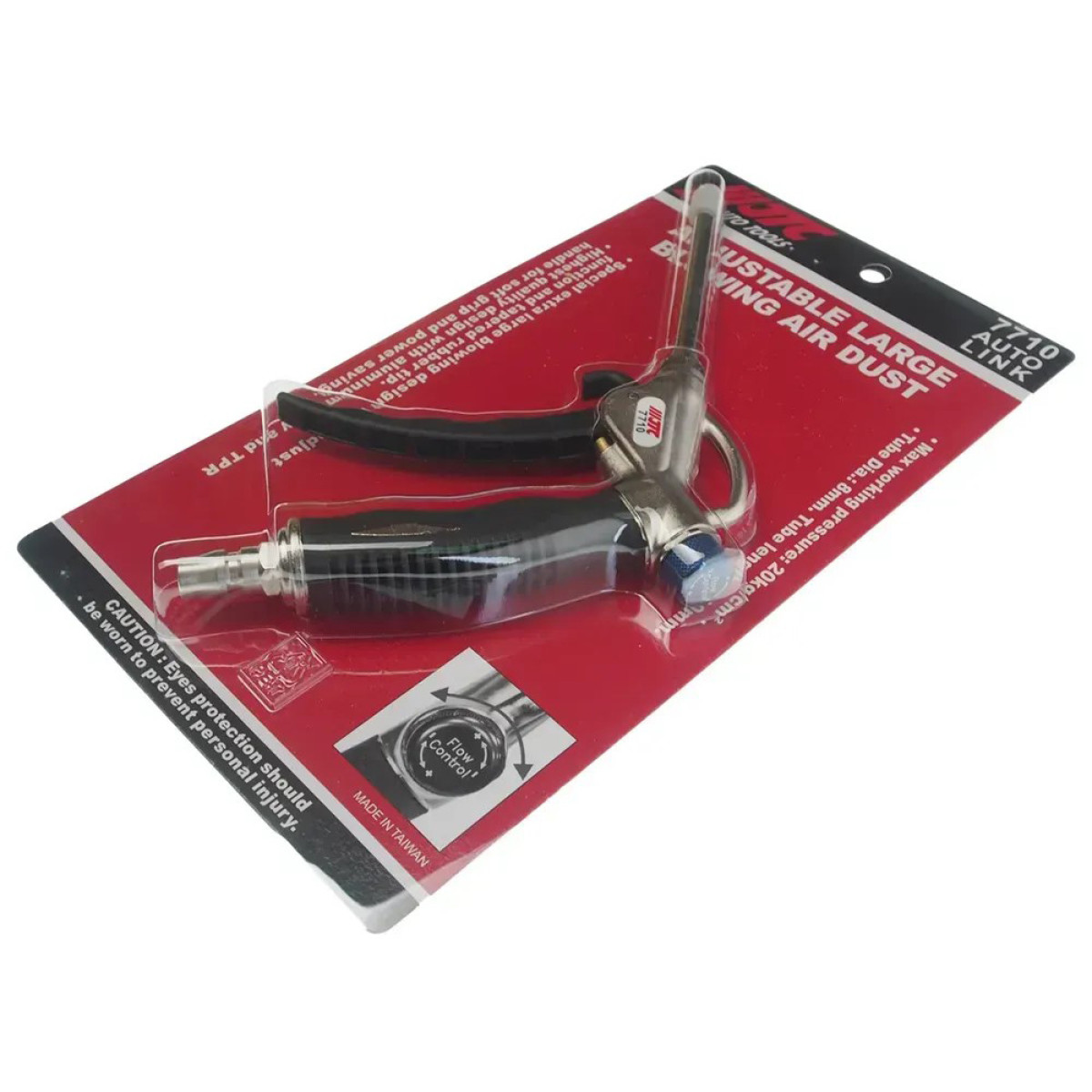 Продувочный пистолет - это новая модель увеличенного размера с функцией регулировки воздушного потока и сужающимся резиновым наконечником. Корпус выполнен из высококачественного алюминия, а рукоятка из термопластичной резины обеспечивает комфортное сжатие и снижает усталость во время работы.