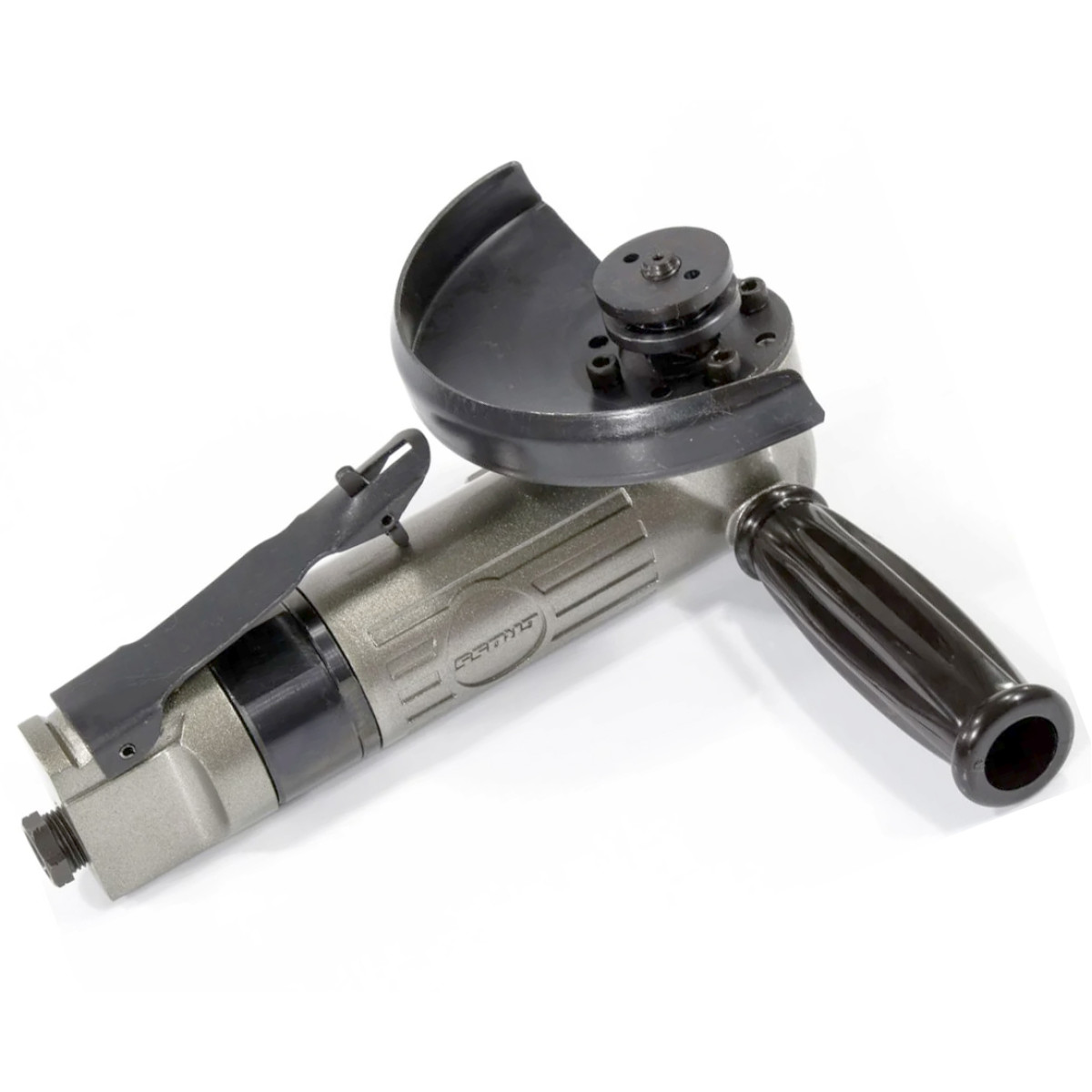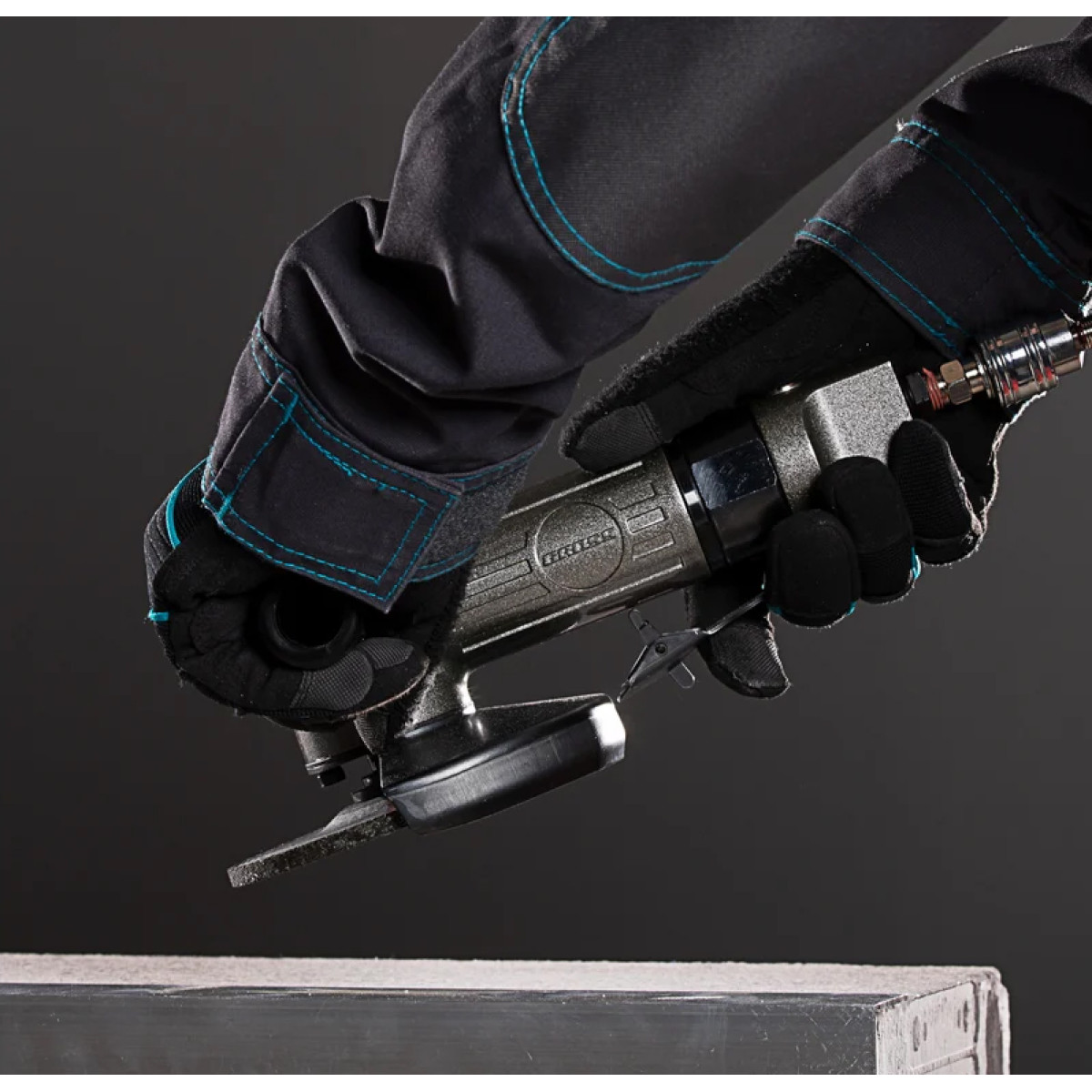 Угловая пневматическая шлифмашина предназначена для резки и шлифования металла и камня без применения воды. Отлично подходит для профессиональных условий. Эргономичный дизайн и удобная прорезиненная рукоятка обеспечивают комфорт при эксплуатации. Клавиша запуска оснащена предохранителем от случайного включения. Дополнительное преимущество - расширенная гарантия сроком 36 месяцев.