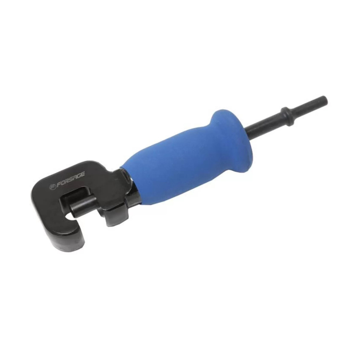 Ударная насадка предназначена для работы с пневматическим молотком при откручивании закисших и приржавевших болтов и гаек. Ударный штифт передаёт импульс от молотка на край гайки, позволяя сдвинуть её с места, выбивать элементы подвески, тяг и других узлов. Благодаря овальному элементу предотвращается проскальзывание, а удобная нескользящая синяя ручка обеспечивает комфорт при работе. Незаменимый инструмент для автосервисов и мастерских.