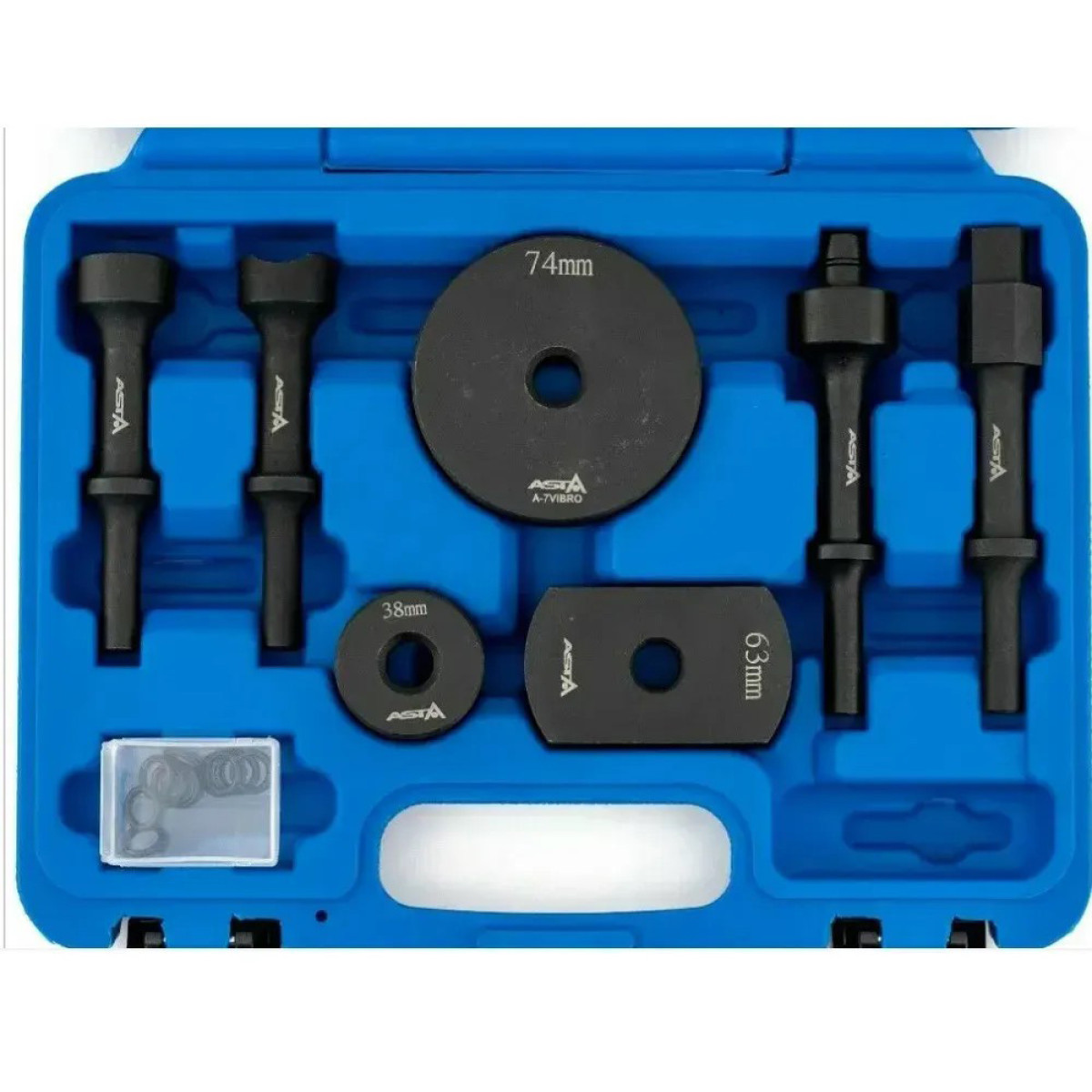 Набор насадок для вибропневматического молотка состоит из , упакованных в удобный переносной футляр. Предназначен для расширения функционала пневмомолотка и выполнения различных работ с металлом и другими материалами.