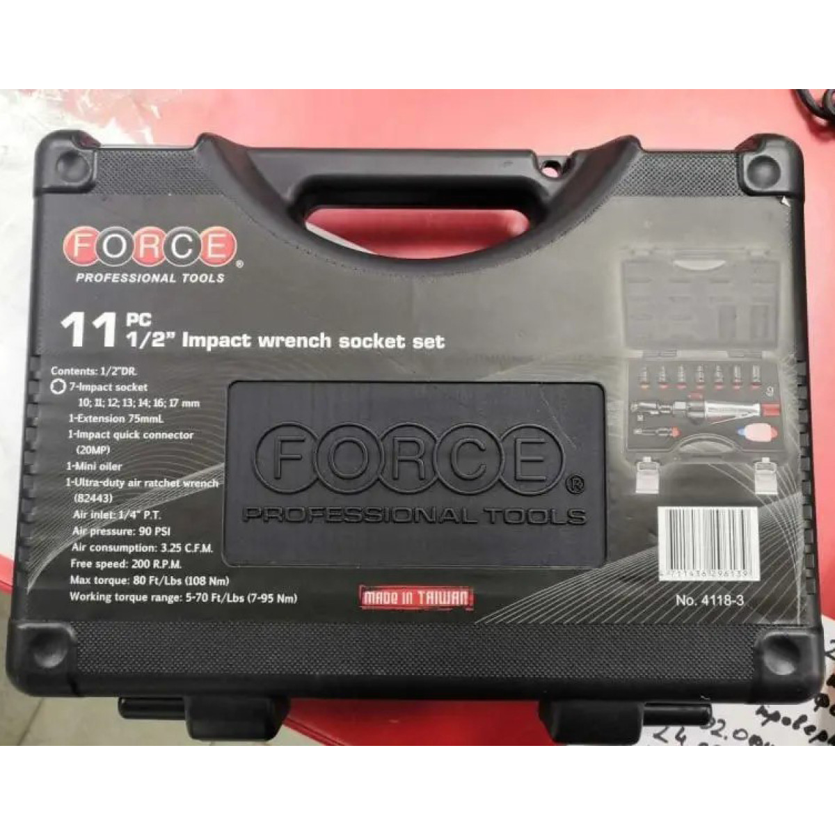 Набор инструмента:пневмотрещотка1/2",81Н·м + 6-гранные головки 10–17мм,кейс. FORCE 4118-3 F - 4118-3 F