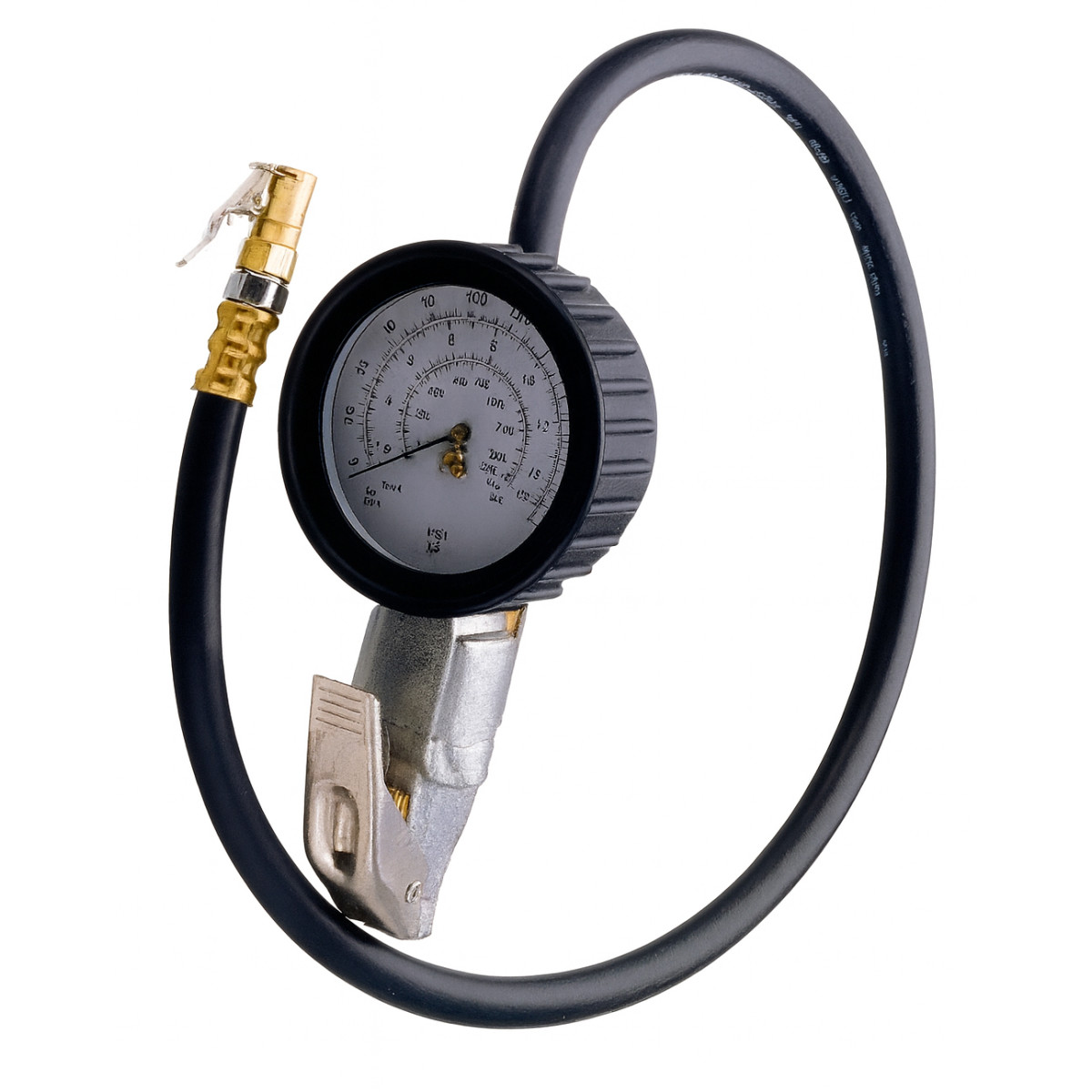 Профессиональный 3-функциональный шинный манометр, который позволяет проверять, регулировать и накачивать давление в колёсах. Изготовлен из лёгкого сплава с латунными клапанами, обеспечивающими долговечность и точность работы. Инструмент оснащён крупным манометром 3-1/2" с легко читаемой шкалой и гибким шлангом длиной 550 мм для удобного использования.