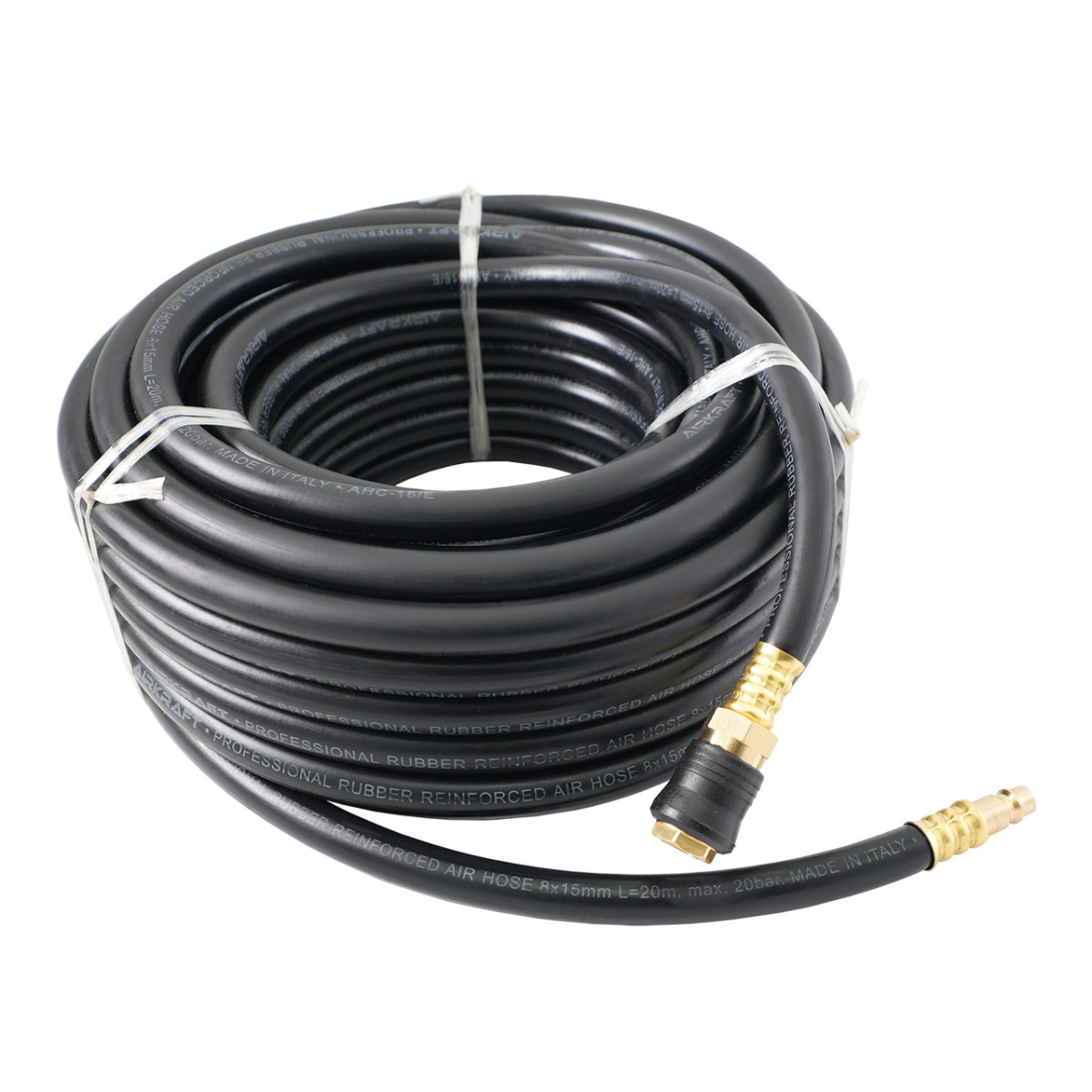 Шланг резиновый воздушный армированный (PROFI) 20 атм, 8×15 мм, 10 м с латунными быстросъёмными соединениями AIRKRAFT AHC-16-D - AHC-16-D